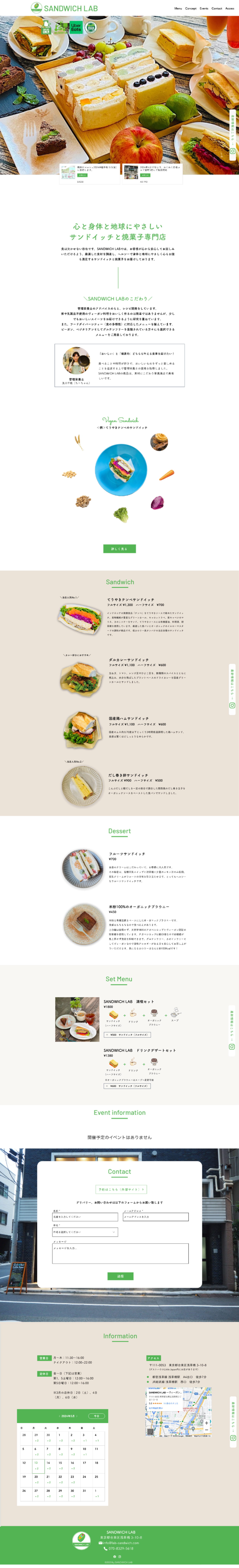 Café Website(Japanese & English) yumi takagi Web Design│Video Editing サンドイッチと焼き菓子専門店のサイトを制作。右下のWebsiteボタンから詳細をご覧いただけます。 WEBSITE