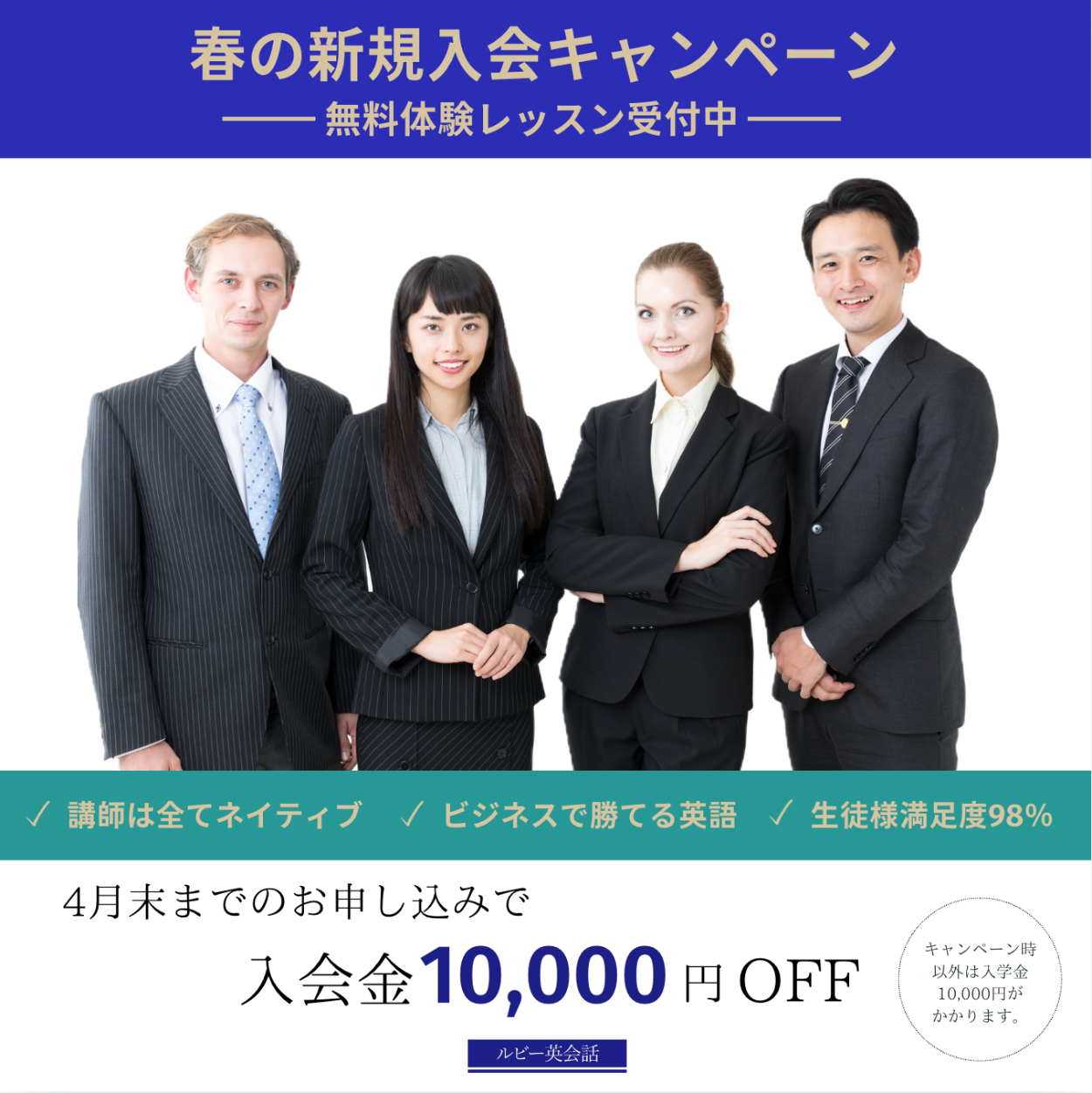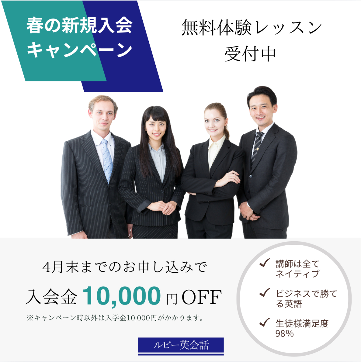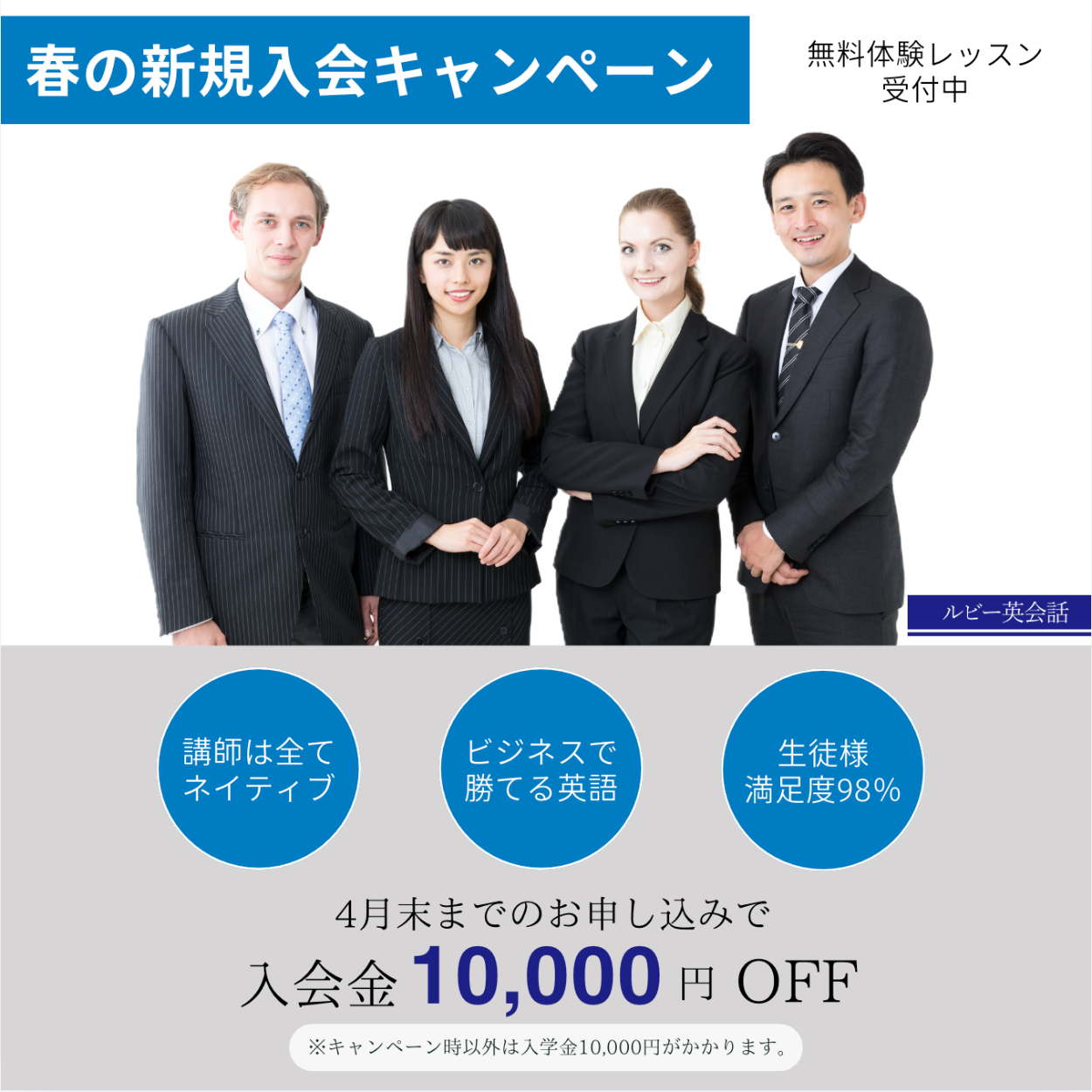 ・スクールポイントである、「講師は全てネイティブ」、「ビジネスで勝てる英会話」、「生徒様満足度98%」も可能であればバナーに入れて欲しい。