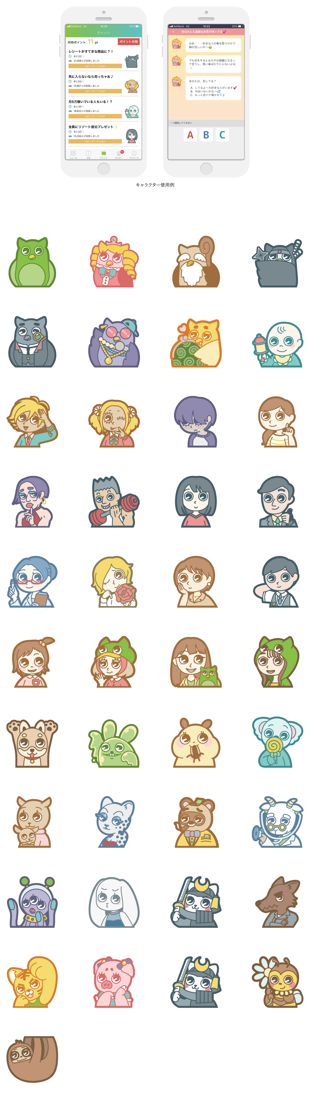 ギフト券などと交換できるポイントを集めるためのアプリ「POWL」。 そのアプリの機能であるチャット型広告で、会話相手として使われるキャラクターを作成。