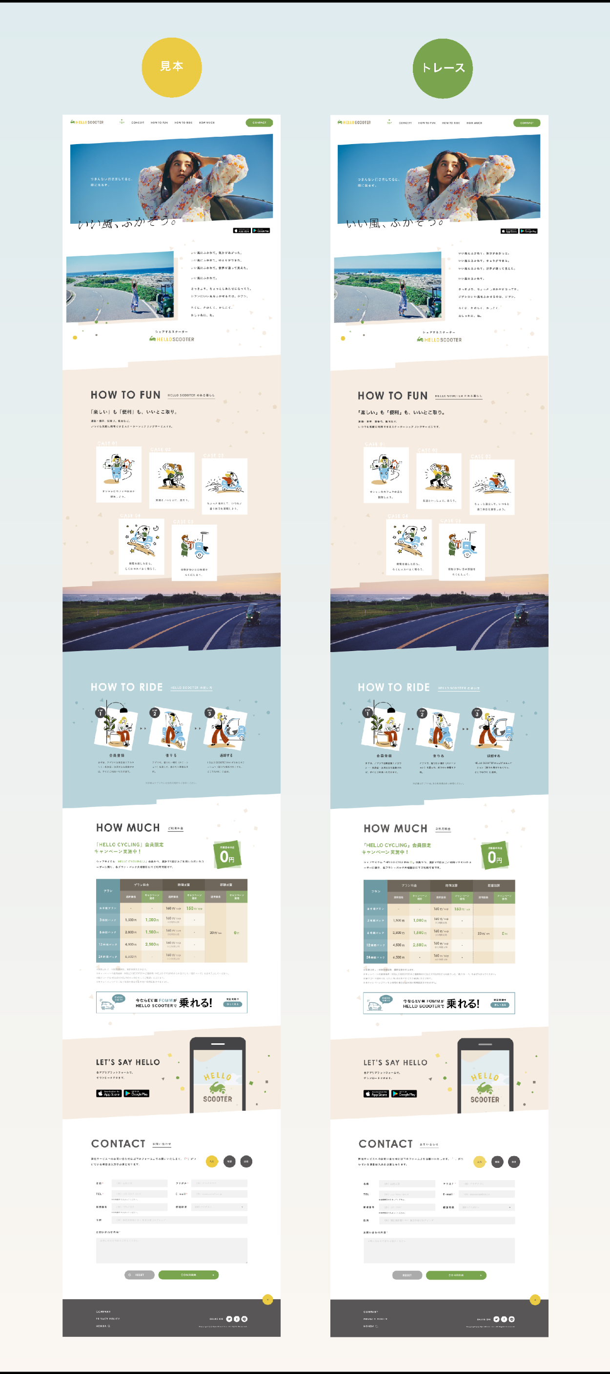 Open Street株式会社さんが運営する、スクーターシェアリングサービス「HELLO SCOOTER」のLPをIllustratorでトレースしました。(実際のサイトはこちらです。)