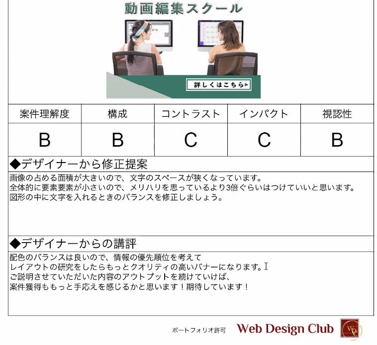 動画編集コンペ saya webデザイナー OVERVIEW クラウドワークスでのコンペ ⭐️工夫した点・動画編集スクールを目立つようにあしらいを入れ文字を大きくしました。・写真もスクールということなので学んでいる女性を使いました。⭐️デザイナーさんからのフィードバック
