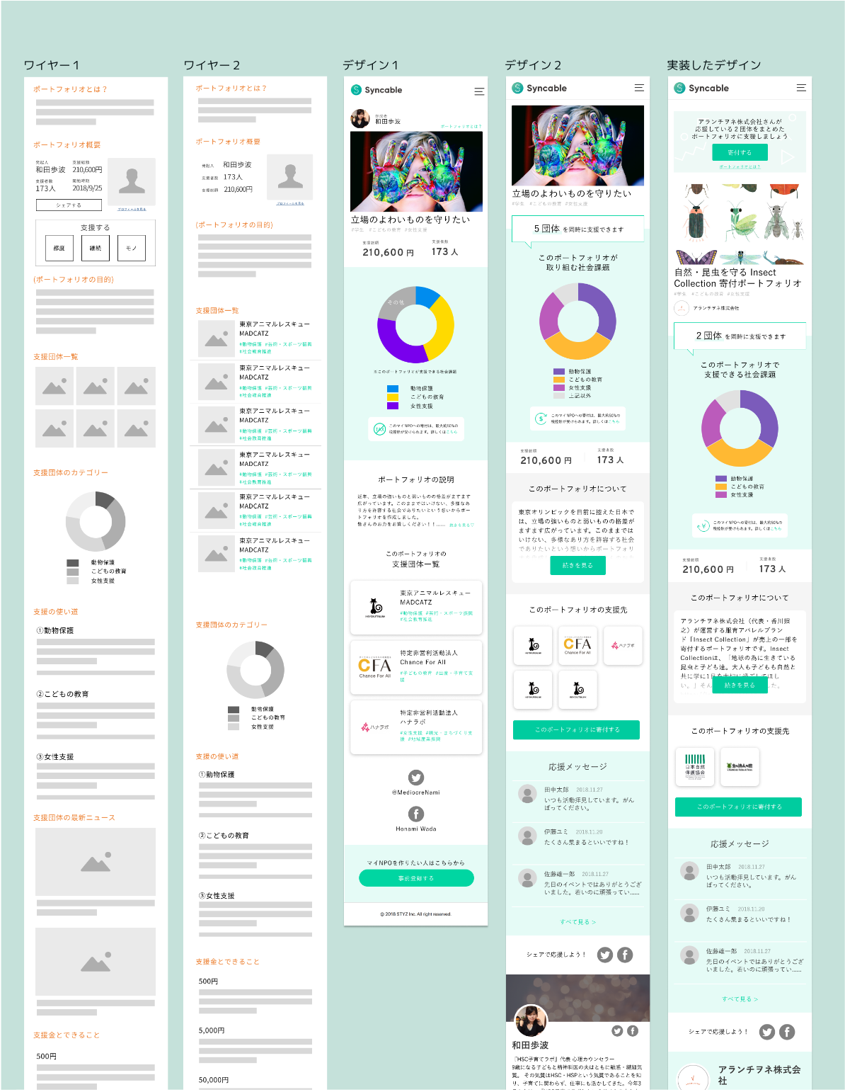 - ワイヤーから実際に実装したデザインまで10回を超える修正を重ねました
