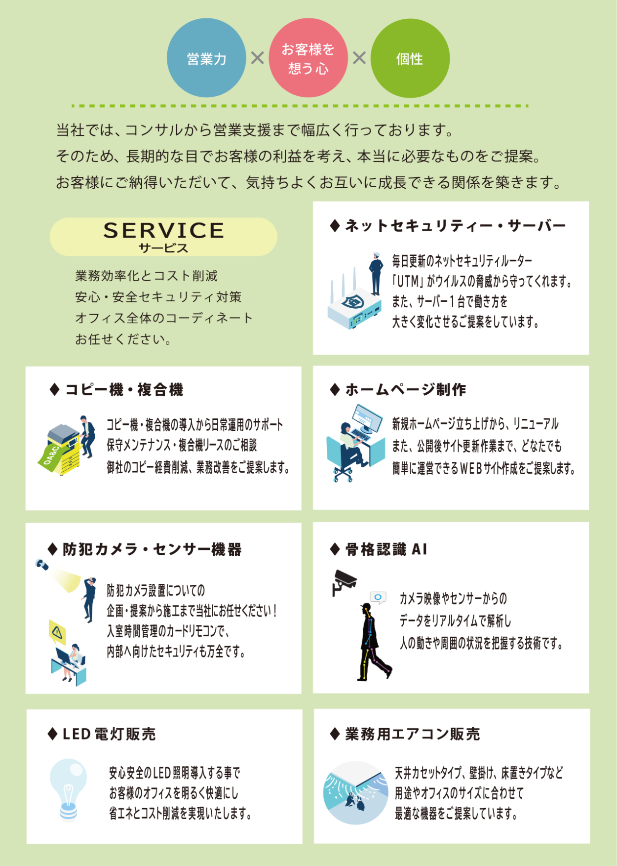 - サービス内容が分かりやすいように、1つ1つ内容を分けました