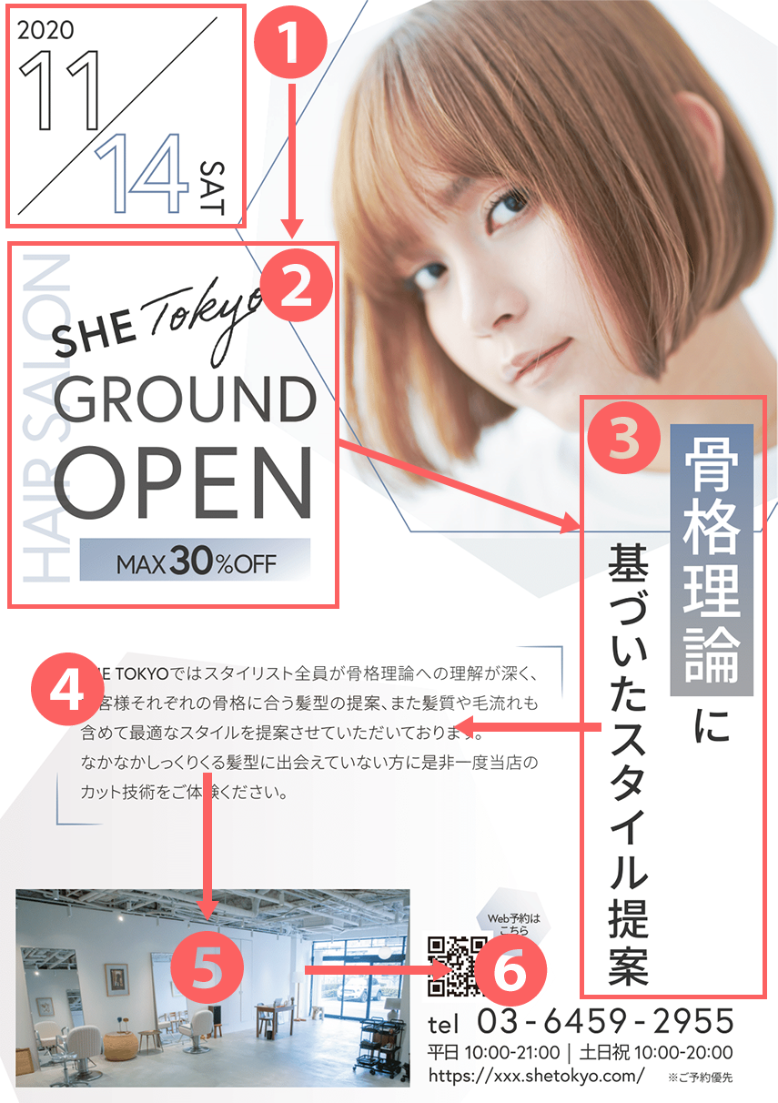 ①→② 11/14にヘアサロンが新しくオープンすることが分かる