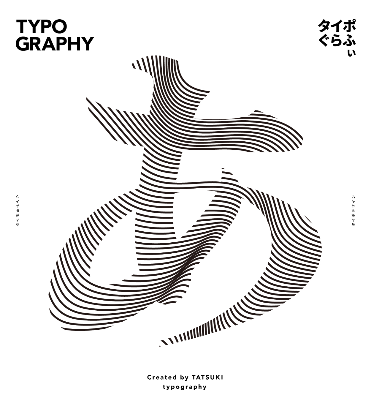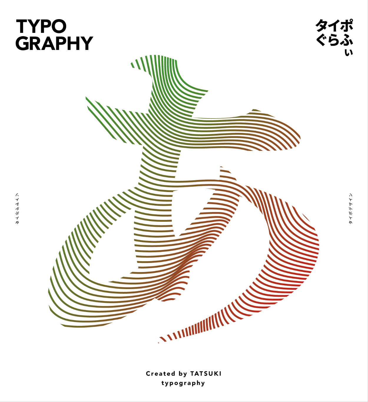 タイポぐらふぃ TATSUKI デザイナー SNS投稿用に作成したタイポグラフィアート作品です。 Illustratorの技術を駆使して、曲線でできた文字を中心に大きく配置し、遊び心のある作品ができました。その他にも色のバリエーションを増やし、遊び心を持たせました。