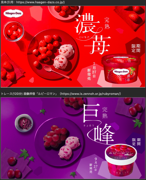 秋を感じさせる色味、写真の綺麗な切り抜きとレタッチ、「完熟」感のある作字、影や光のつけ方