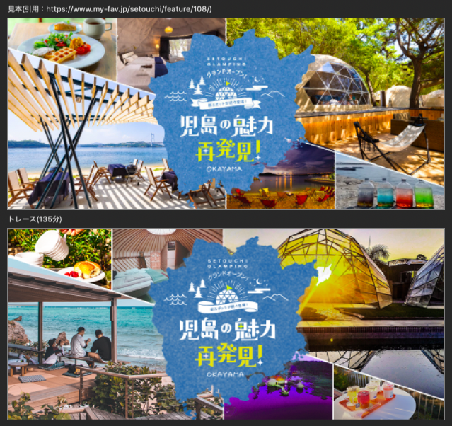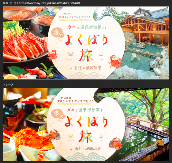 イラレ操作の練習として、旅系のバナーに多い作字やオリジナルロゴをトレースしました。