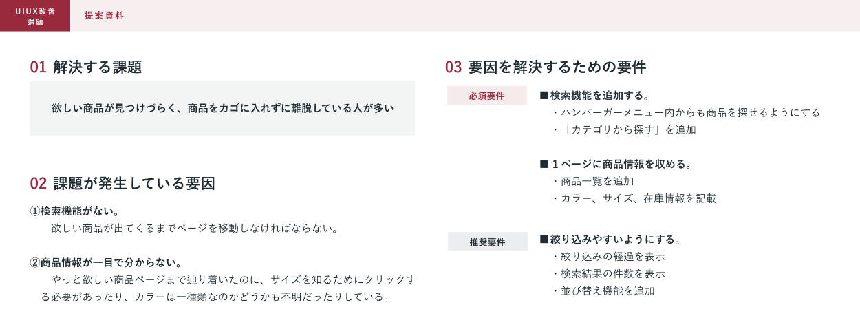 ・課題3:欲しい商品が見つけづらく、商品をカゴに入れずに離脱している人が多い