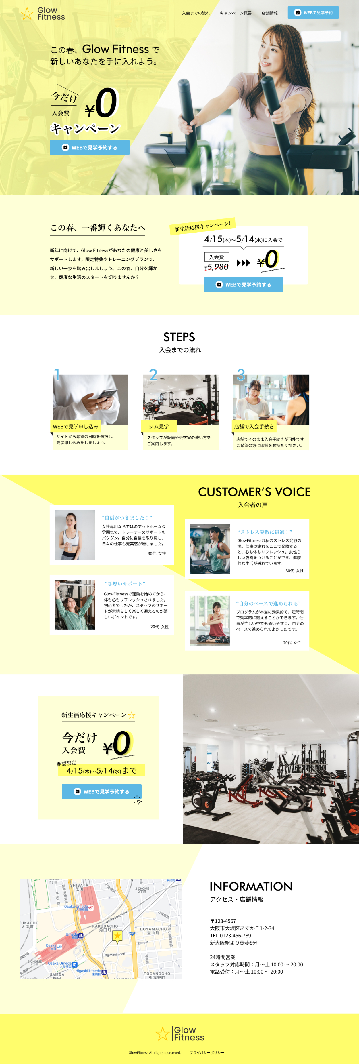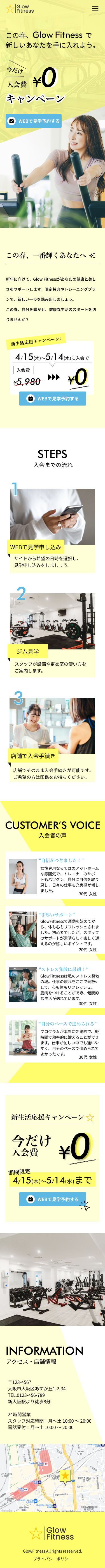 ・ ジムで期間限定、入会費無料キャンペーンを実施するので入会を促すランディングページを作ってほしい。(通常は入会費¥5,980)