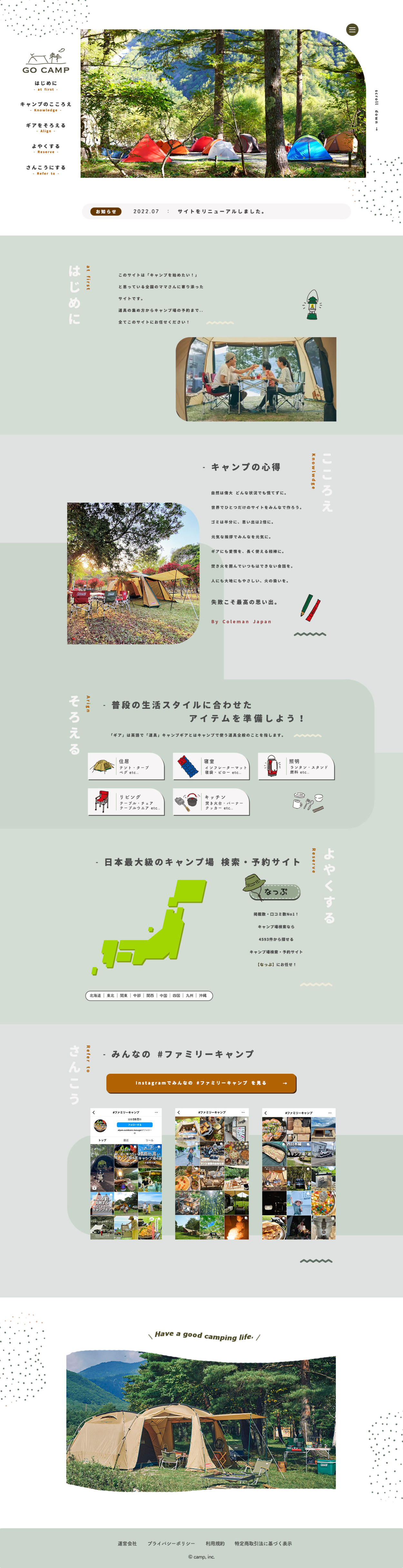 ・架空の初心者ママさんキャンパー向けサイトの制作