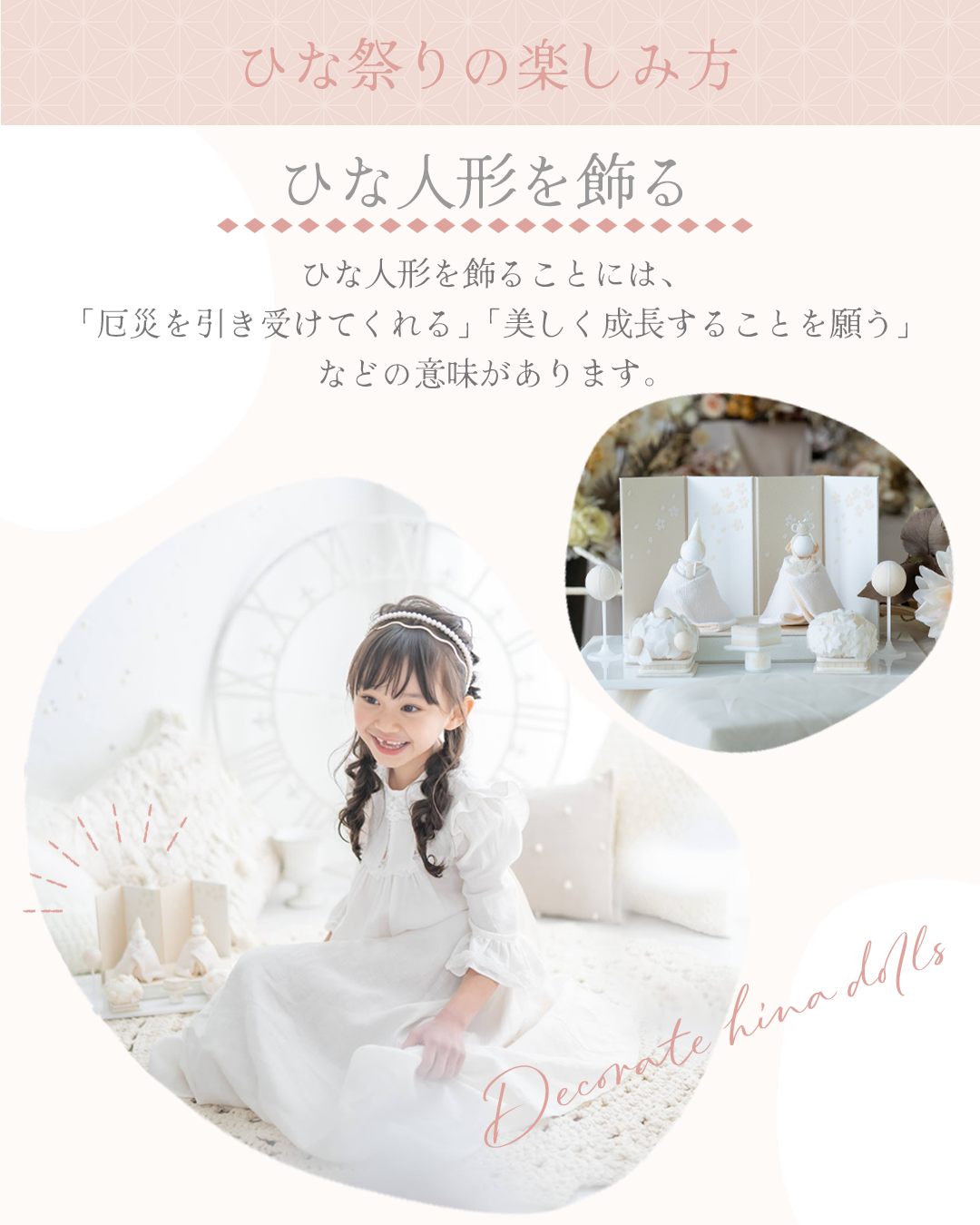 ひな人形を飾るほか、ひな祭りならではの食べ物を食べたり