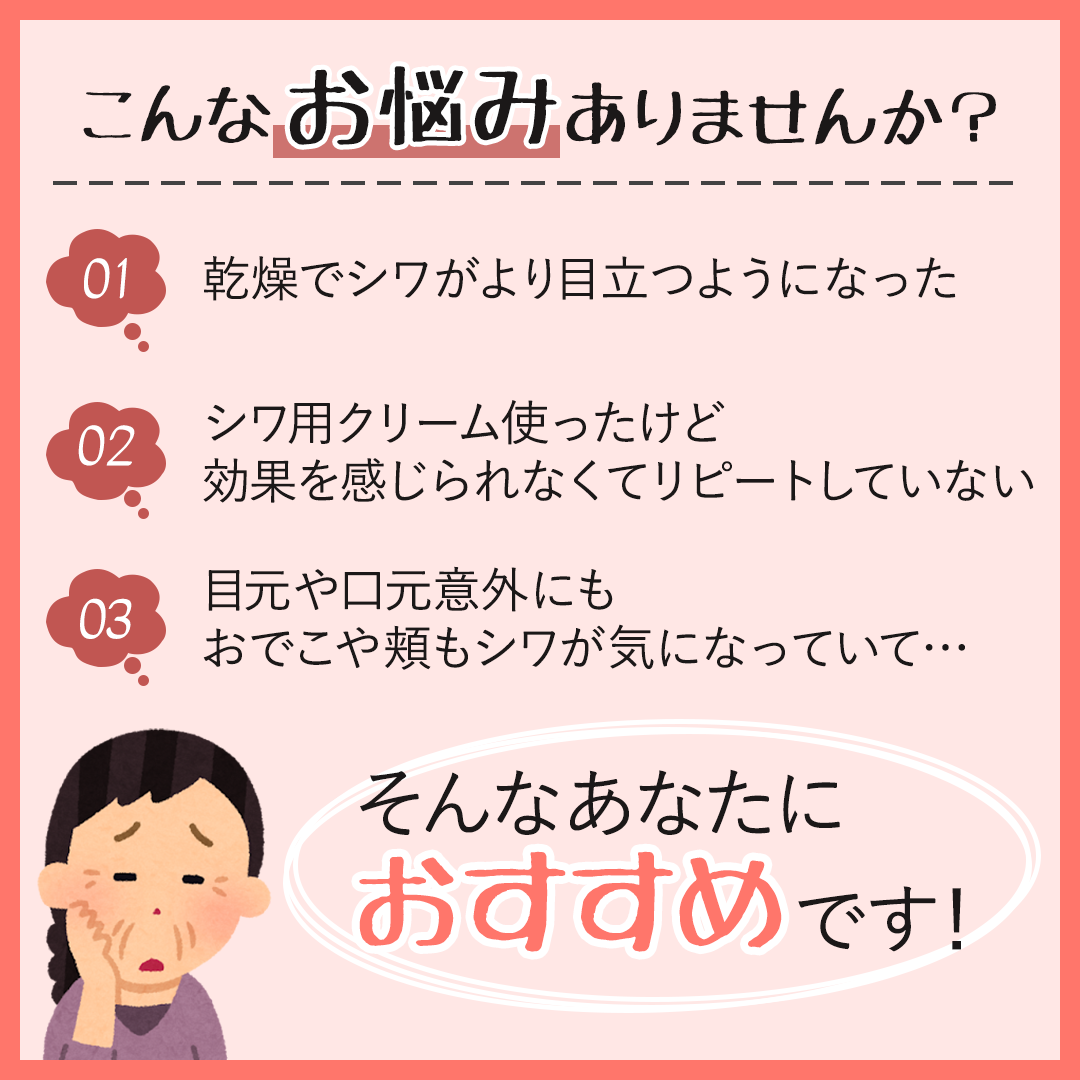 ・シワ悩みが顕在化/目元や口元だけでなく、おでこや頬などのシワも気になる/