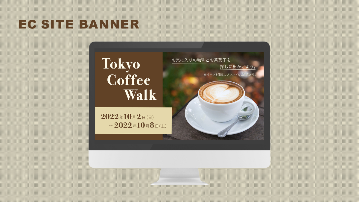 SNSの掲載し、そこからコーヒーイベントの申し込みページに遷移させることを想定したバナーです。申込者数を増やすことが目的です。