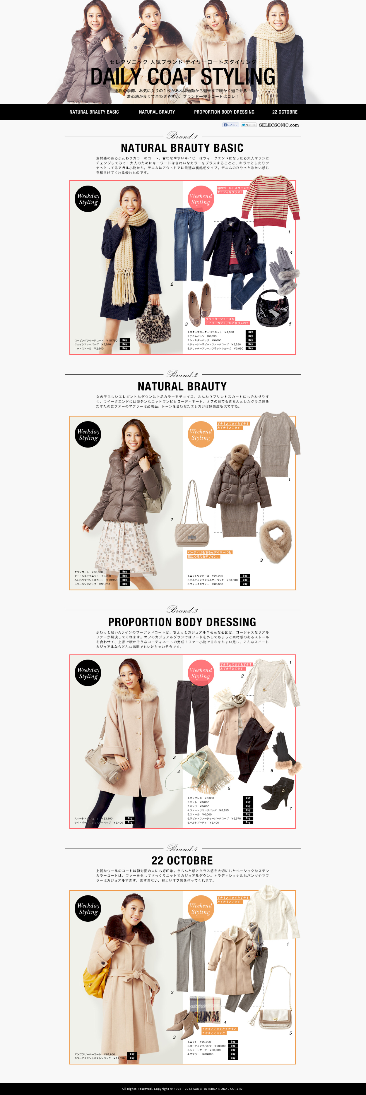selecsonicで人気のブランドのデイリーコートスタイリング特集ページを制作しました。