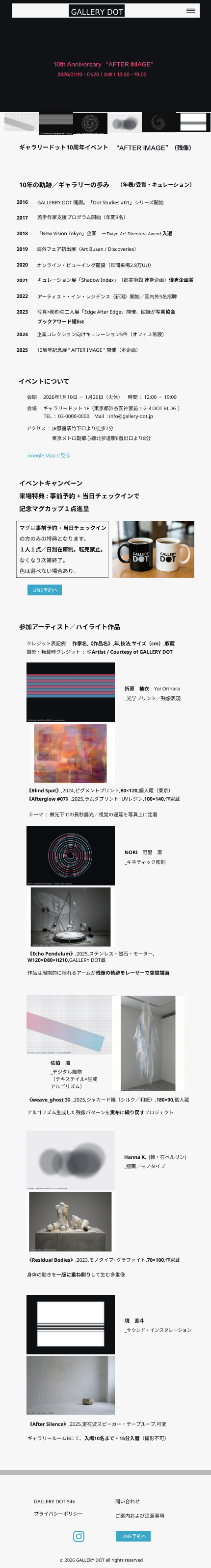 架空の現代美術ギャラリー GALLERY DOT/ギャラリードットの10周年イベント告知ページの作成。