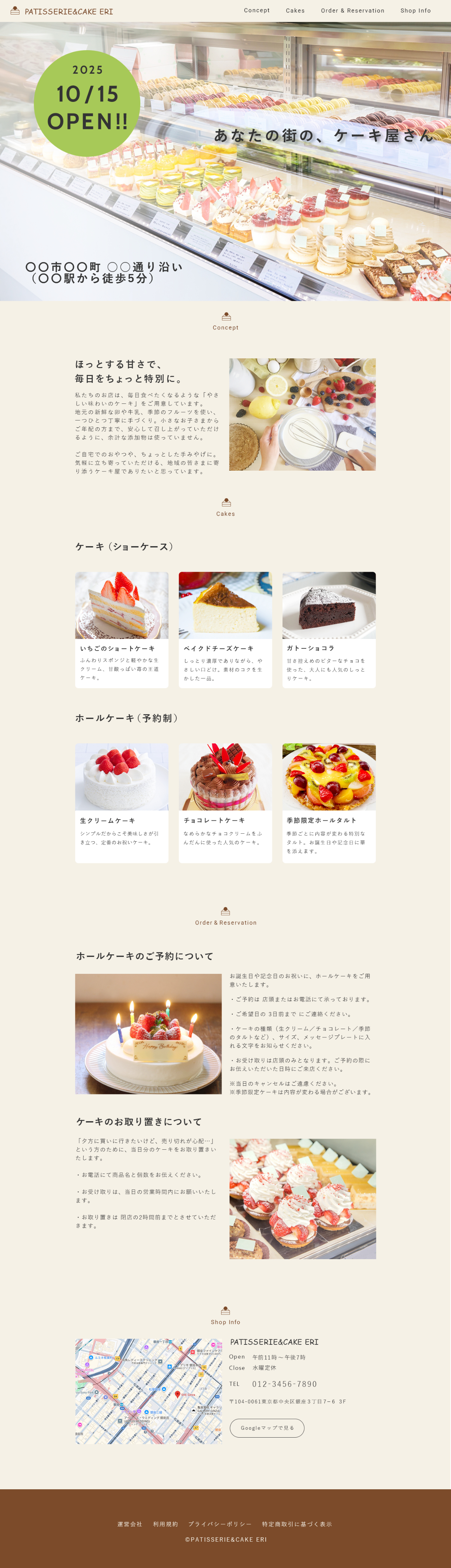 - サイトの概要・制作目的:お店の特徴やケーキへのこだわりを伝えて、お店に足を運んでケーキを購入してもらうこと