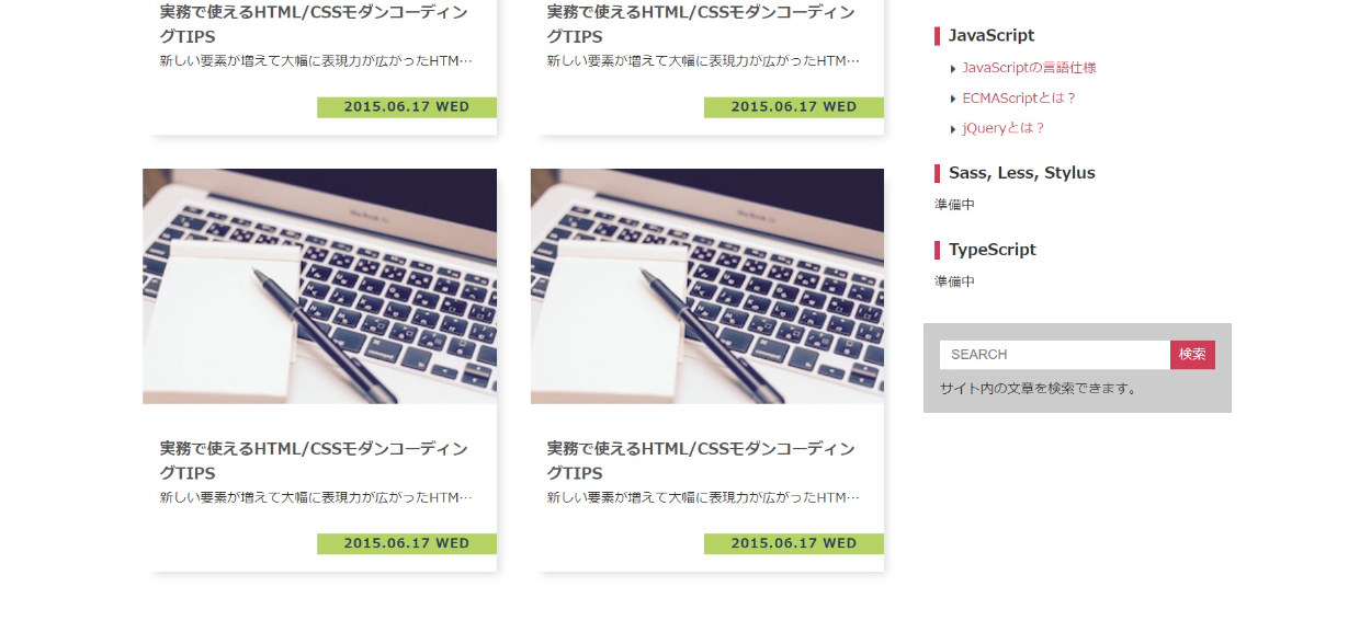 著作『HTML/CSS3モダンコーディング』に掲載している、 ブログサイトの模写コーディングを行いました。