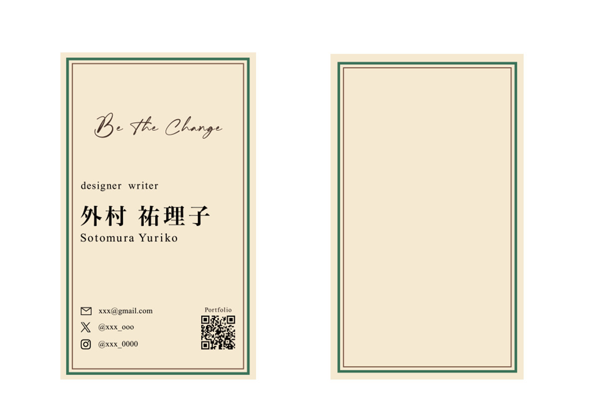 今回は相手に「優しく誠実な印象を与える」ことを目的としていたたため、フォントは丁寧で綺麗な印象を与える明朝体を使用しました。また色合いは優しさやナチュラルなイメージを演出するために、アースカラーを採用。枠線にカラーを入れつつ囲みをあしらうことで、誠実な印象を演出しました。
