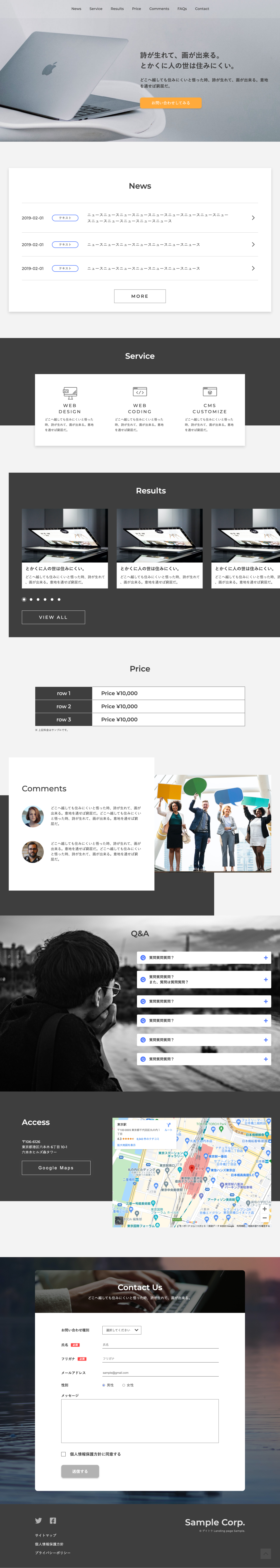 【コーディング】架空LP ain フリーランスWebデザイナー OVERVIEW AdobeXDのデータを元にコーディングしました。レスポンシブ ・アニメーションにも対応しています。 YEAR 2022 ※デザインは担当していません。実際の動きはこちらをご確認ください!作業時間:30時間使用ツール:html, css, scss, jquery, javascript WEBSITE