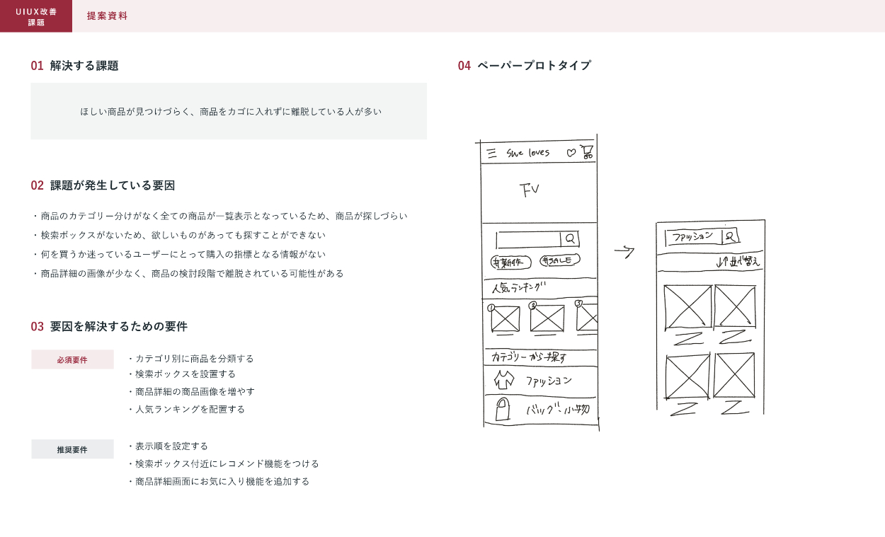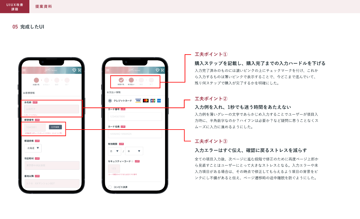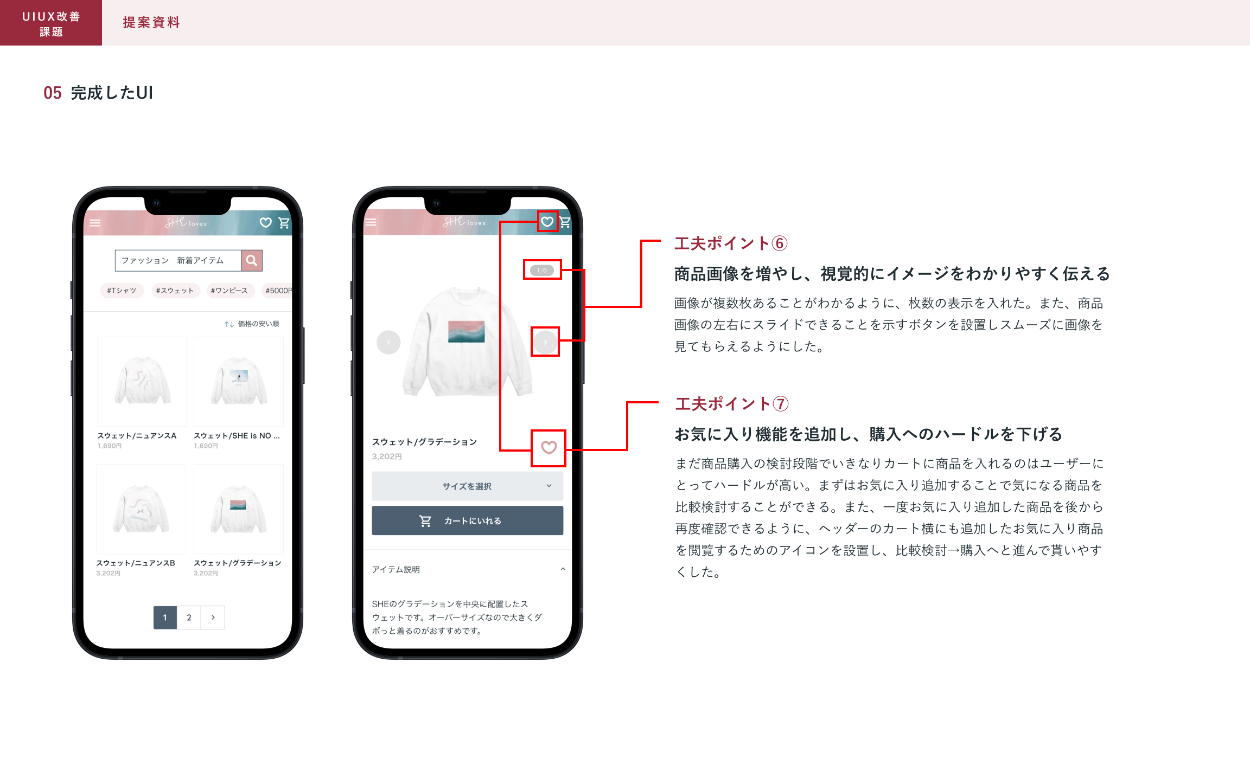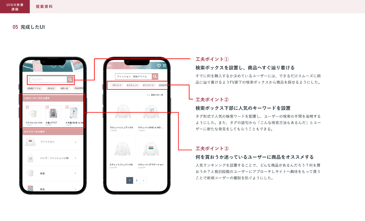 課題解決のためのUI改善の提案資料を2点作成しました。