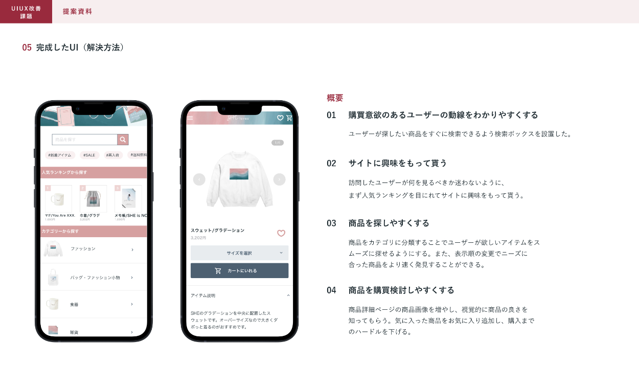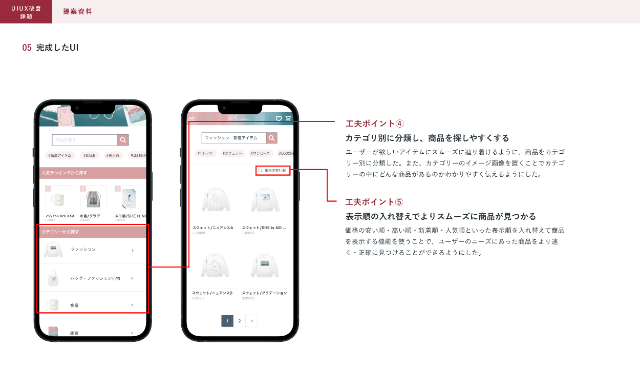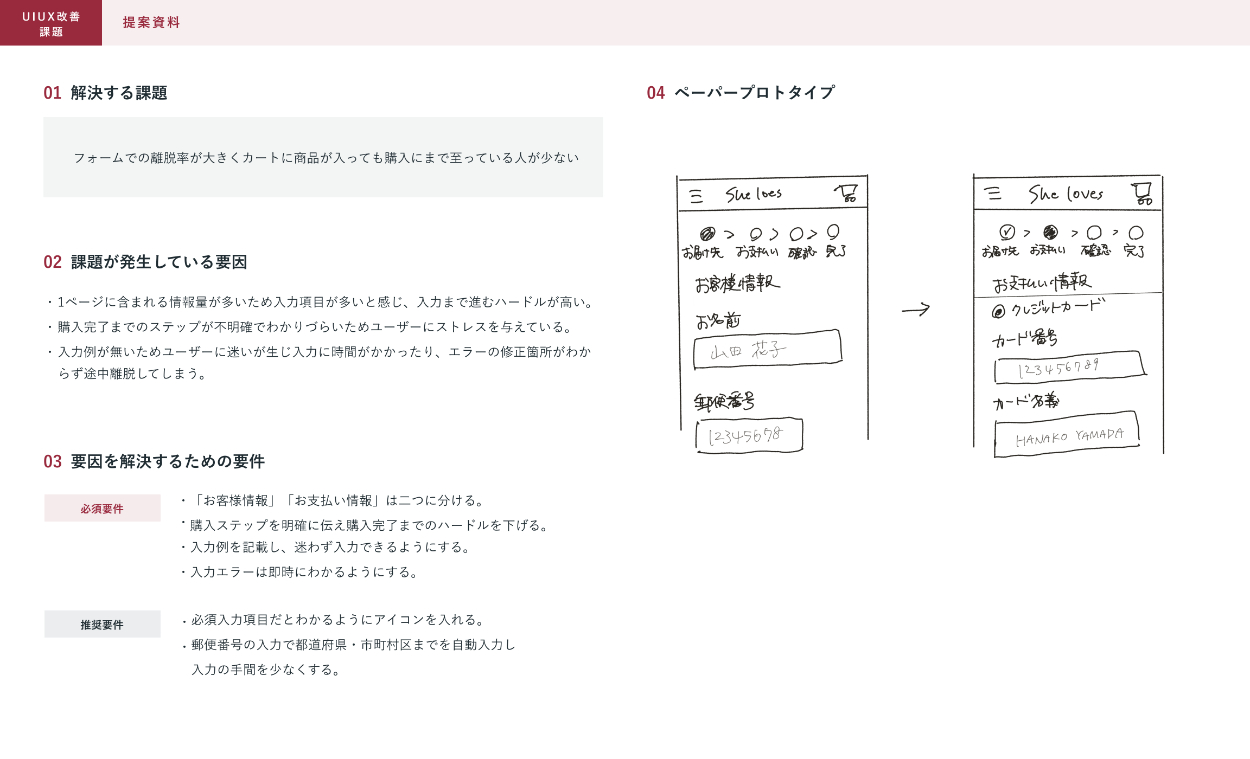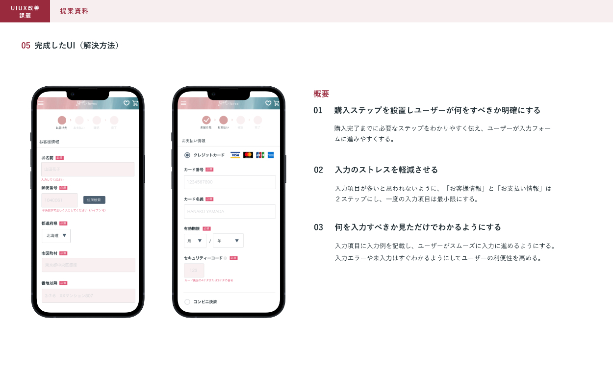 課題解決のためのUI改善の提案資料を2点作成しました。