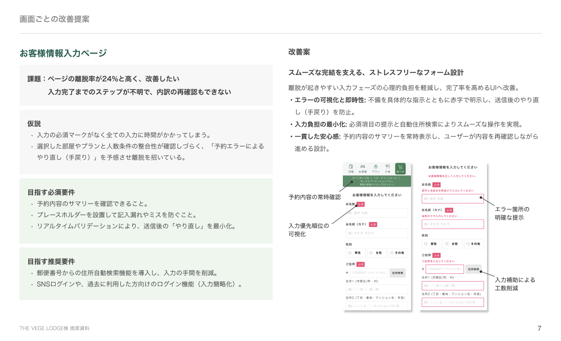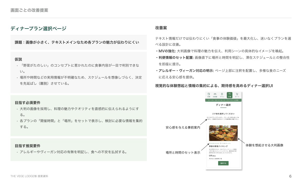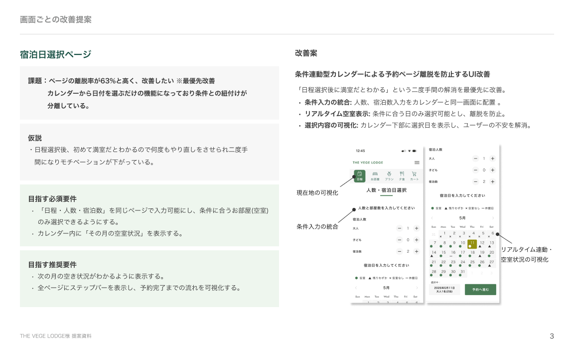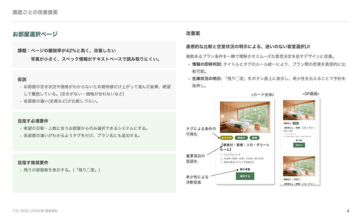 【課題】宿泊施設の予約サイトUI/UX改善