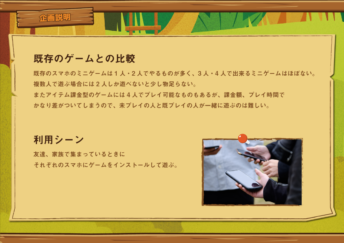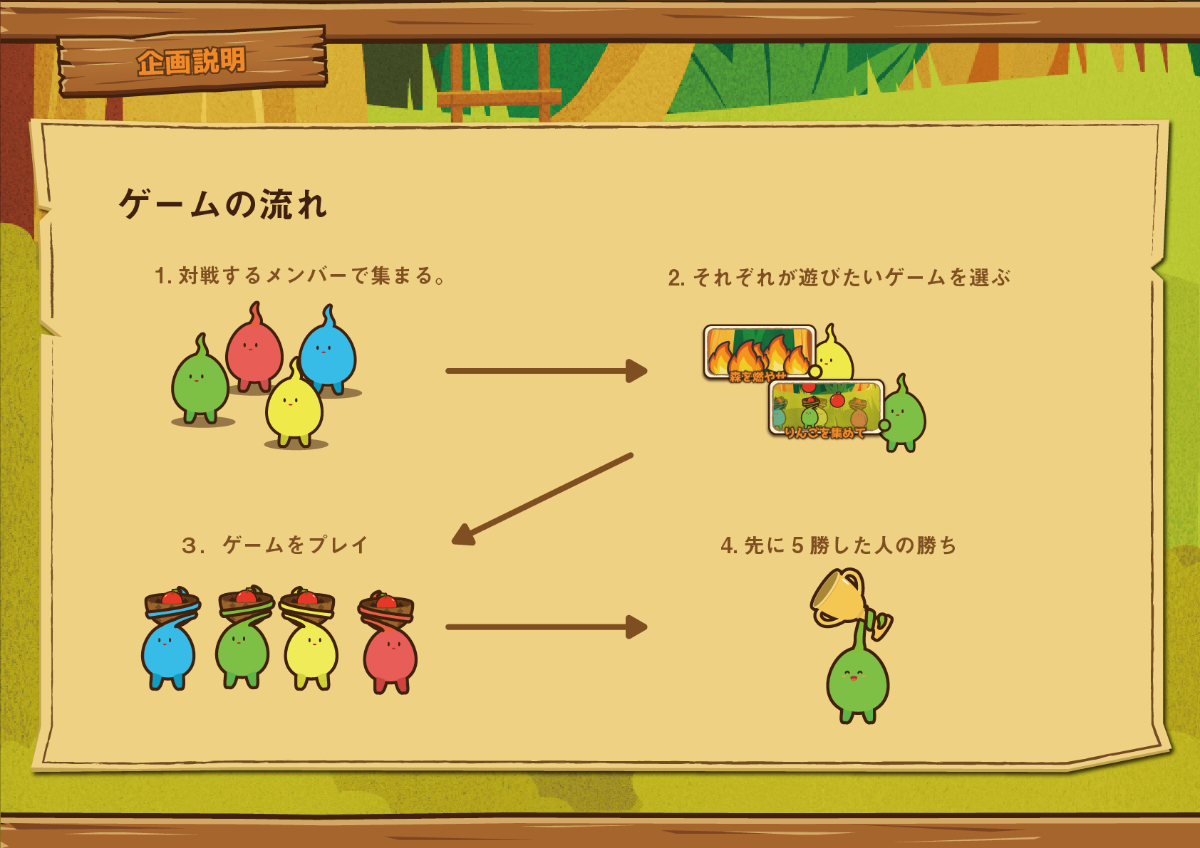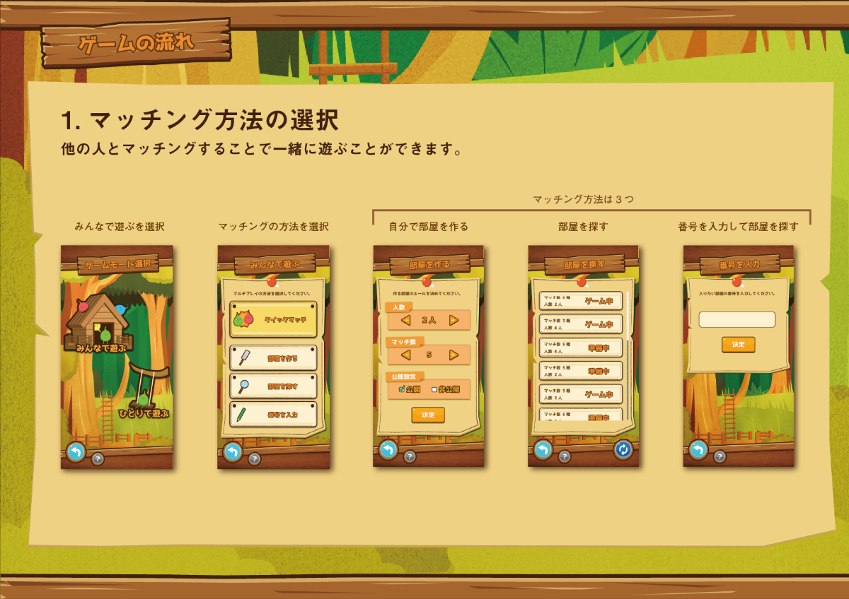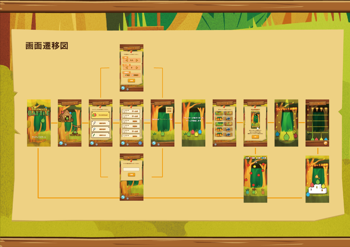 対戦型ミニゲーム「ツリーハウスバトル」 やまお 学生 OVERVIEW スマホ向け対戦型ミニゲーム「ツリーハウスバトル」のゲーム企画書とUIデザインです。 YEAR 2019 - 2019 概要学校の課題で制作制作期間:1ヶ月作品詳細