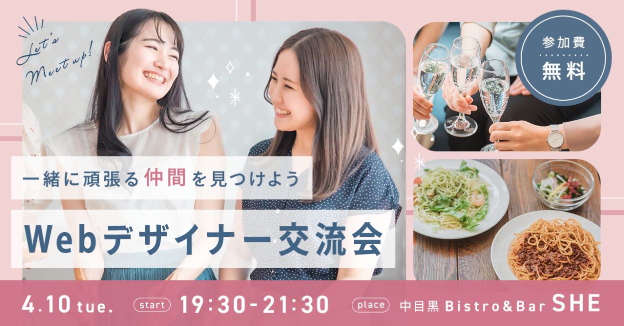 - 何の広告なのか一目で分かるよう、Webデザイナー交流会の文字を大きく目立つように配置した