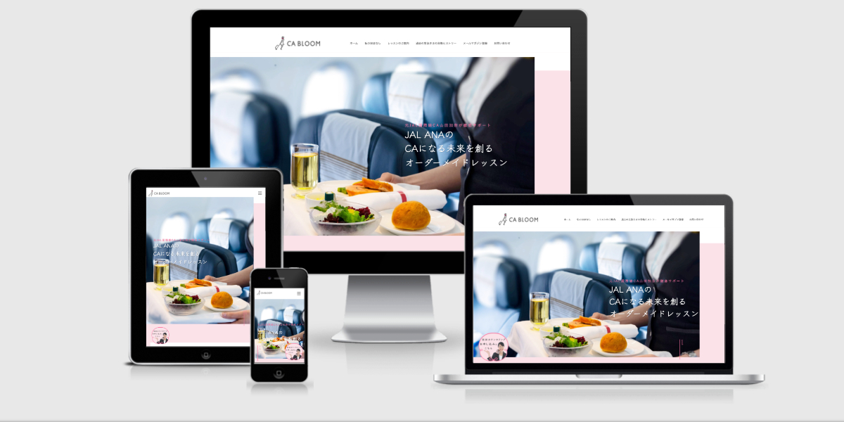 メインカラーはピンク、各所にイラストなどのあしらい散りばめて、受講を検討している方が未来を想像してワクワクするようなサイトを目指しました。