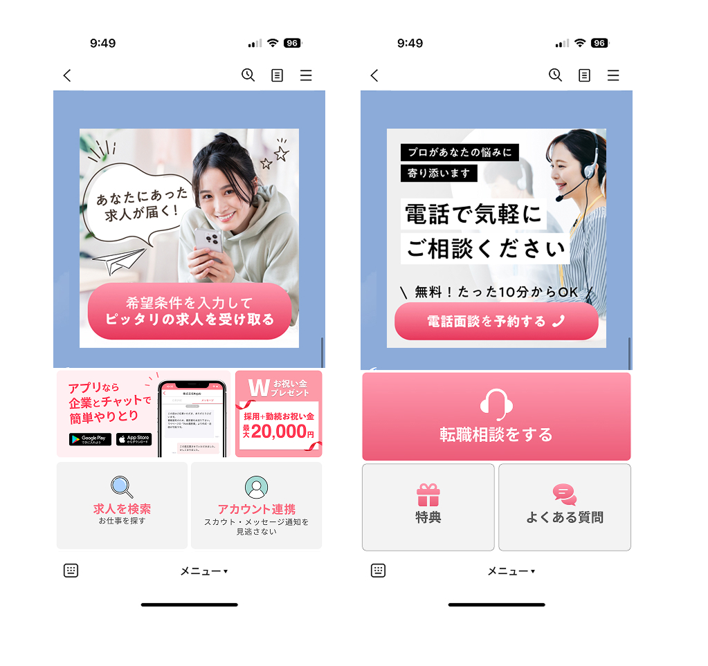 LINE関連デザイン Aso(Nishimuta) Mio UIデザイナー OVERVIEW LINEのリッチメニューやリッチメッセージなど制作しました ▼制作概要制作時期:2025年5月作業内容:LINEリッチメニュー・リッチメッセージなど使用ツール:Figma/Photoshop制作期間:1週間↓LINEその他