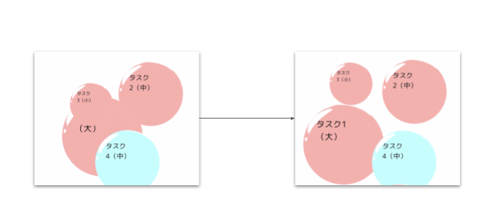 しかし、一日で完結するような短期的なタスクを管理する場面において、リスト形式では逐一並べ替えるコストが発生し、並列するタスクの優先度の表現が難しいと考えました。