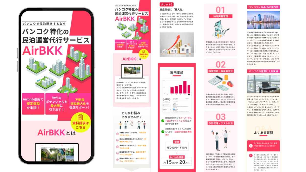 バンコク特化の民泊運営代行サービスのHP One Service| Web制作 Webサイト制作・Webマーケティング OVERVIEW バンコクの民泊運営代行サービスを運営する事業者様のHPを制作いたしました。 YEAR 2025 WEBSITE