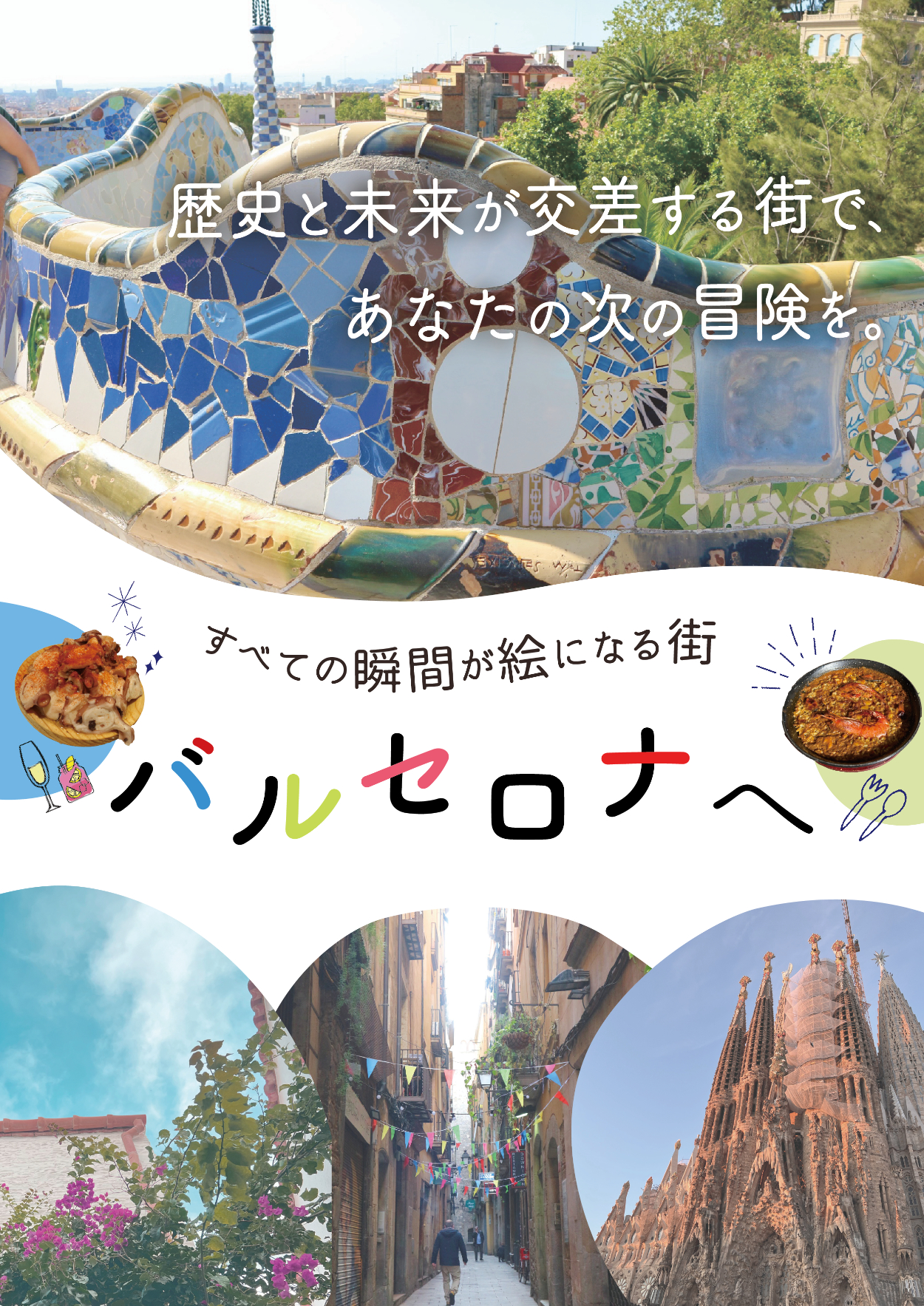 - グエル公園のモザイクを上部に大きく配置し、バルセロナの特徴的なアート性を表現しました。