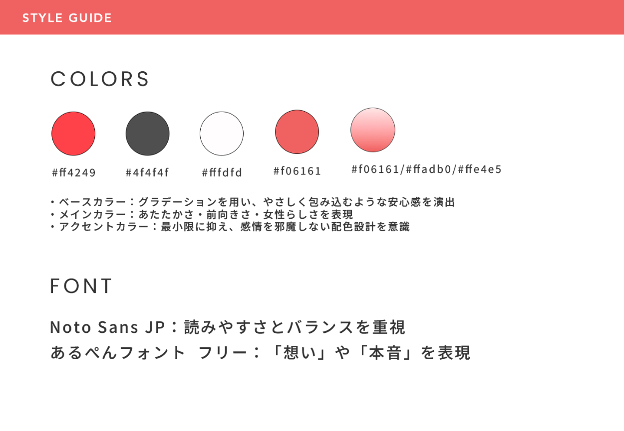 また、ロゴの配置や配色、トーンを資料全体と統一することで、ブランドとしての一貫性を保ち、信頼感・安心感につながる構成としました。