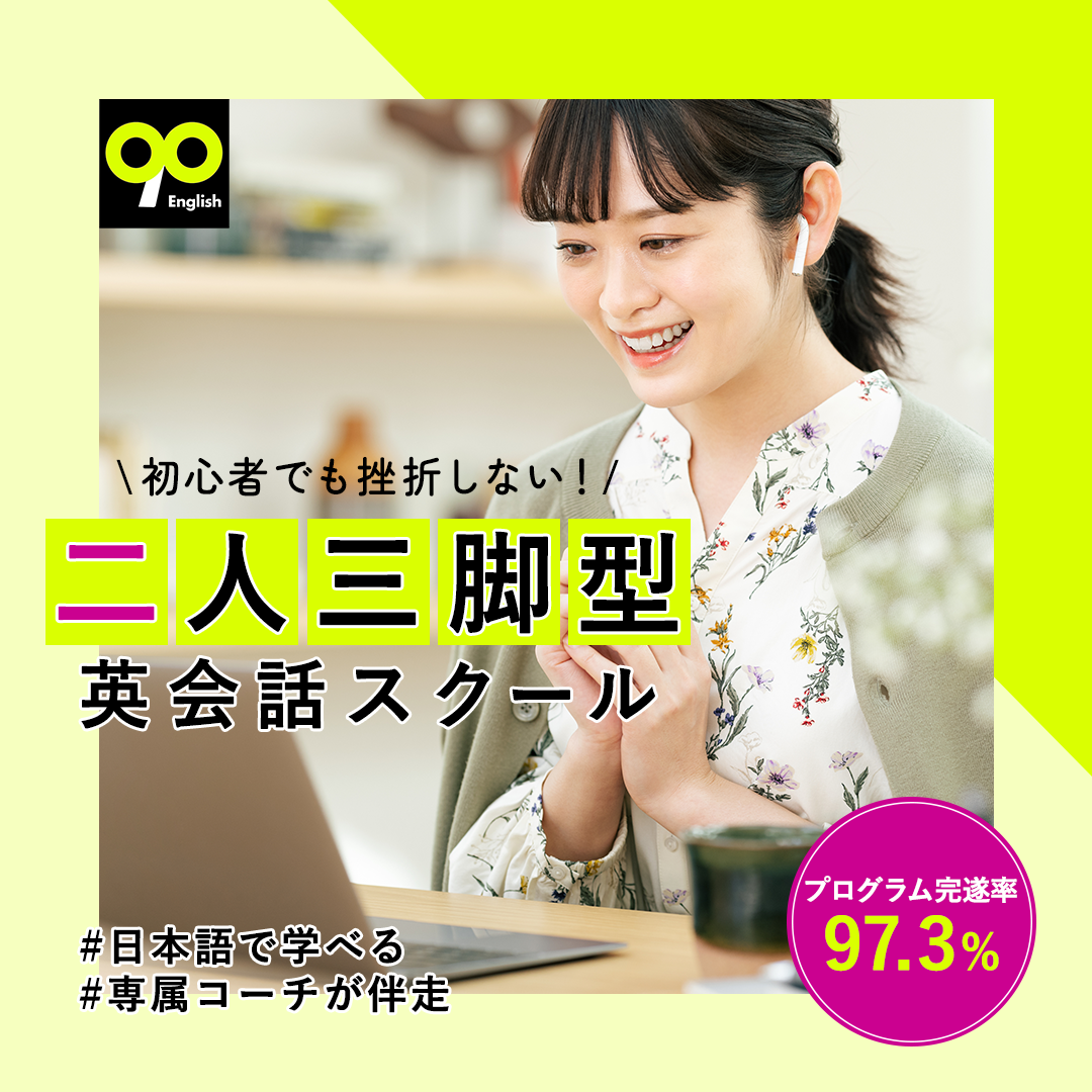 SHElikesの「お仕事チャレンジ」にて実施された、90 株式会社が運営する英会話スクール『90 English』の広告バナーコンペ用の作品です。TAさんに添削いただき修正を加えています。