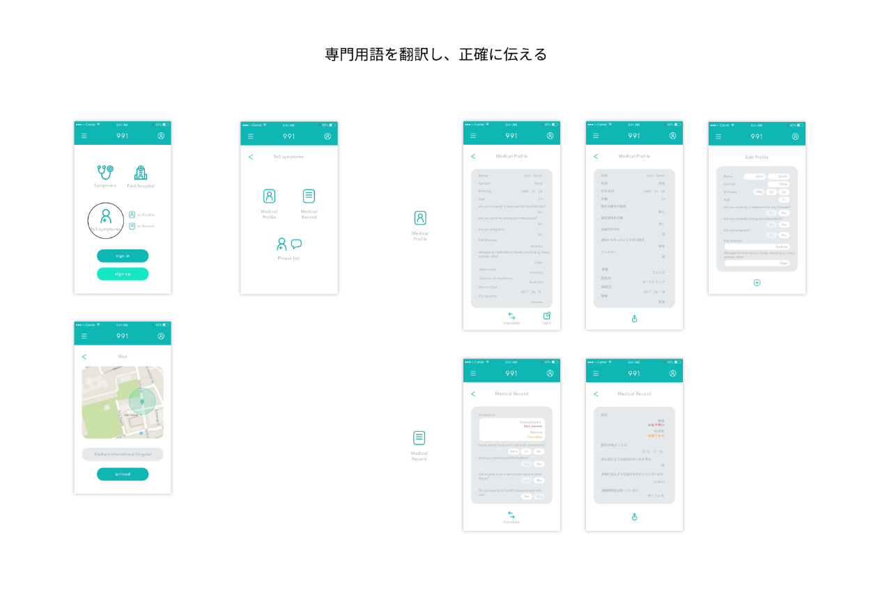 991は外国人観光客と医師のコミュニケーションをサポートするアプリです。
