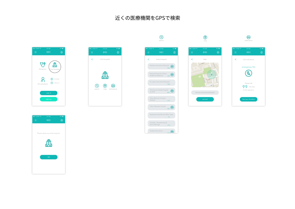 救急受診アプリ 991 / Plannning, UI design