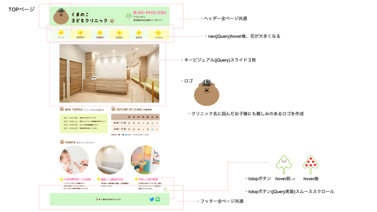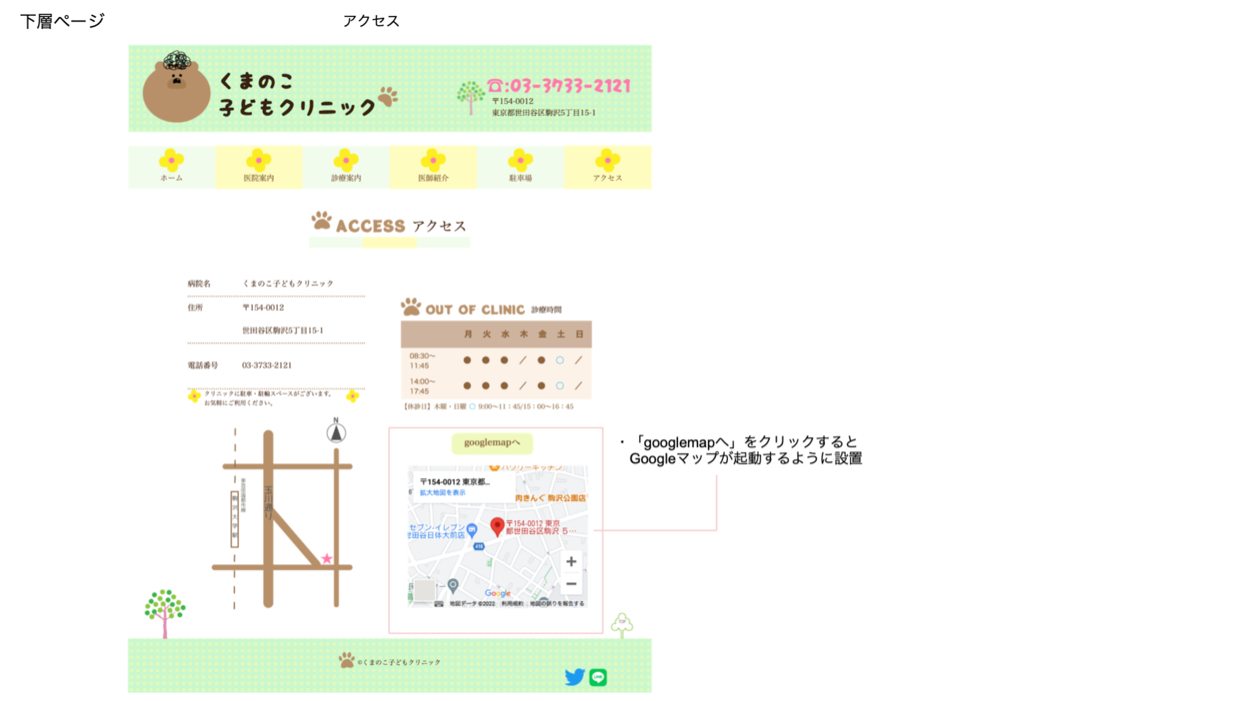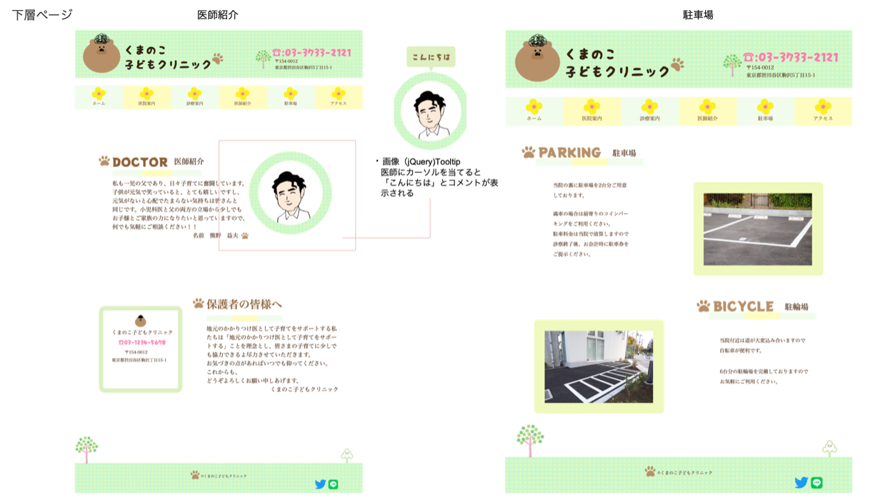 東京都の職業訓練校のグループ制作。 クライアントを担当する別グループよりヒアリングを行い、 「東京都世田谷区にある小児科」という設定で制作。