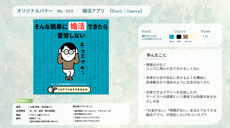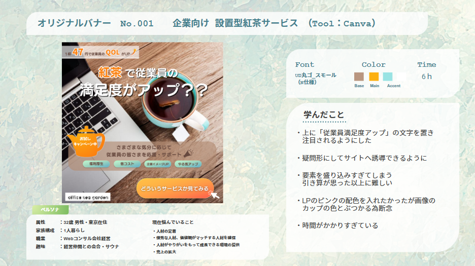 職業訓練校の課題で作成した『バナー改善提案書』を基に改善したバナー案を作成。
