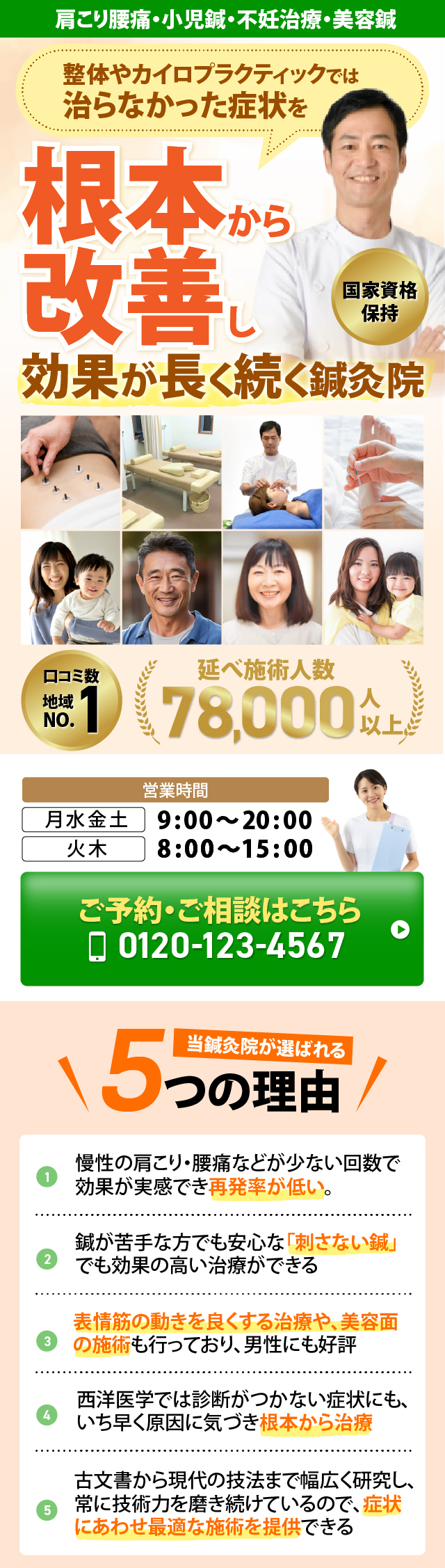 鍼灸院の集客ランディングページスマホデザインを作成しました。