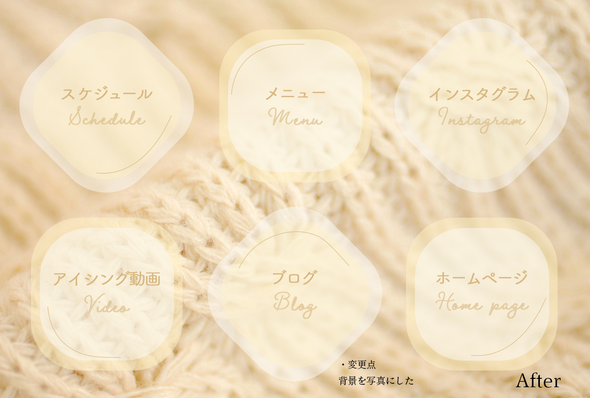 ・ボタン感がないため、思い切って背景を写真にするか濃い色にするとより良くなる◎