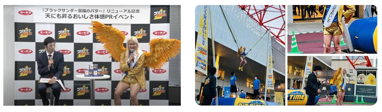 PR大使ならぬ「PR天使」としてキャッチコピー「天にも昇るおいしさ」を逆バンジーで天に昇りながら伝えてもらう体感PRイベントを実施。