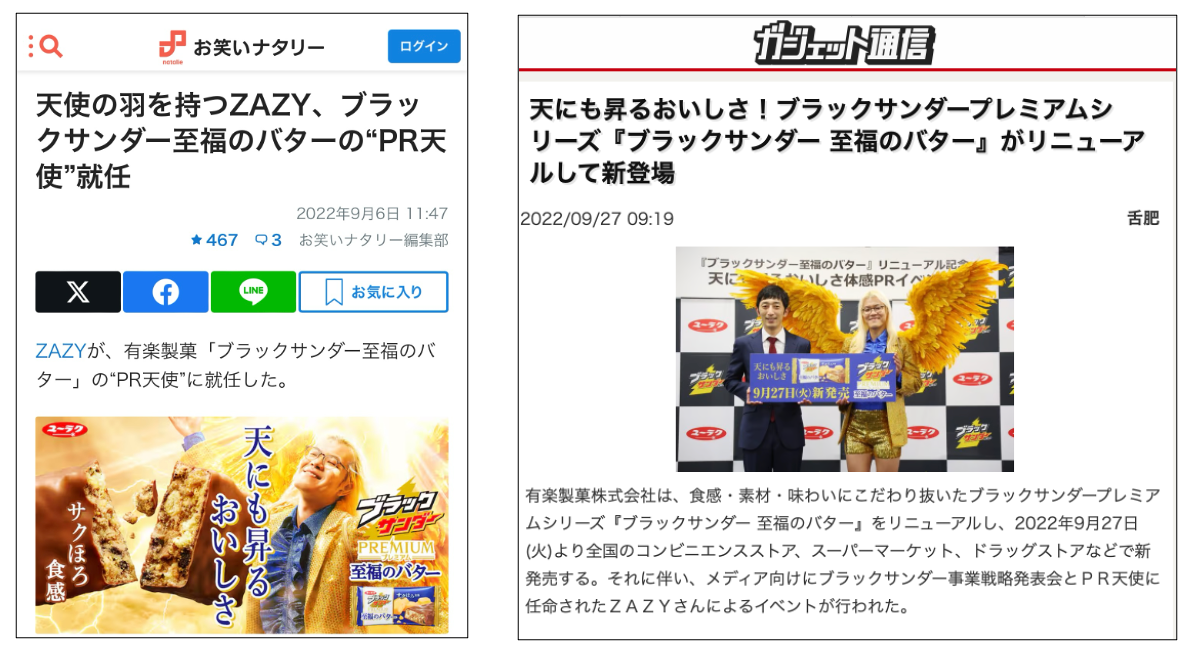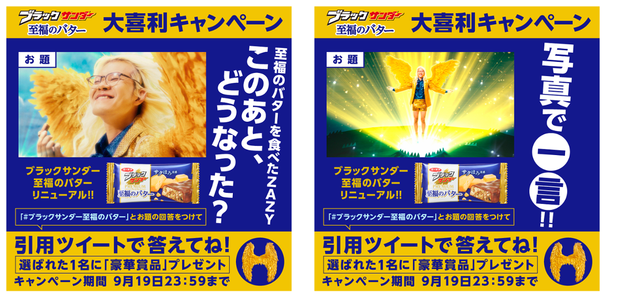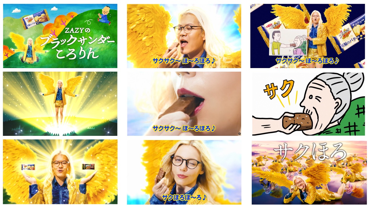 ブラックサンダー史上初のおいしさ訴求という課題に対し、本商品の「プレミアムなおいしさ」を「サクサク、ホロホロ」という食感コピーと、ゴールドのプレミアムなZAZY氏によるリズムネタで表現。WEBCMを中心にしたコミュニケーションを展開。 役割:CD+企画+C