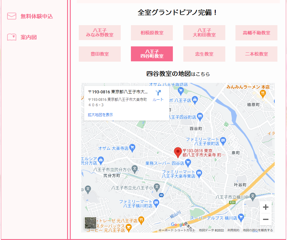 また地図にはお客様ご希望に沿うようGoogle地図を設定