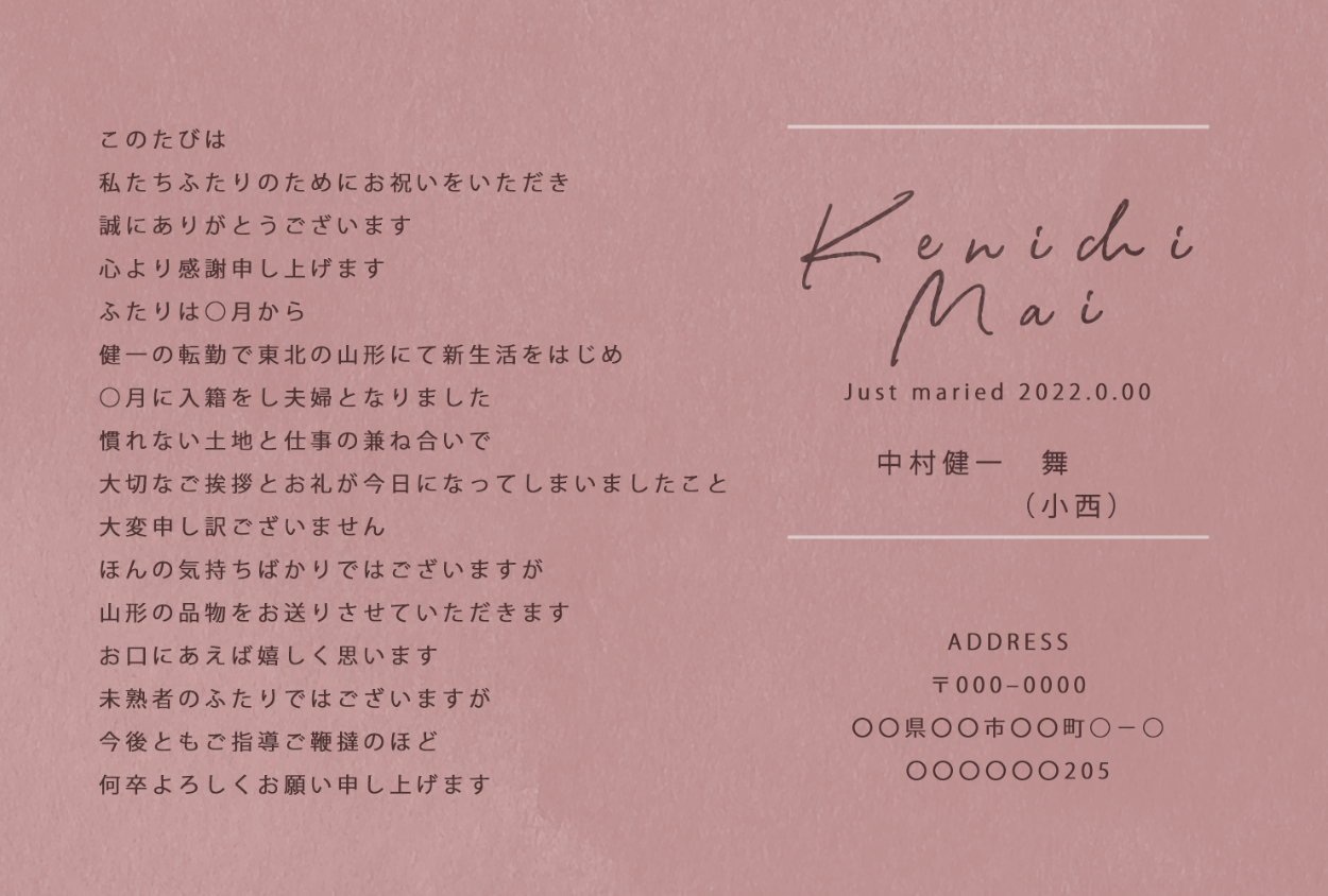 ・結婚を報告するとともに、お祝いをいただいた方へお礼のメッセージを込めた