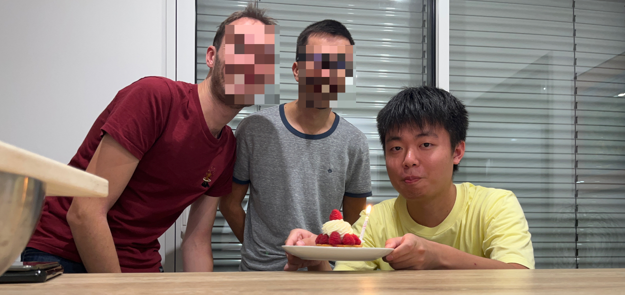 留学中に誕生日を迎えた私に、ホームファミリーがサプライズでケーキを用意してくれました。あまりの驚きに、泣きそうになっています。