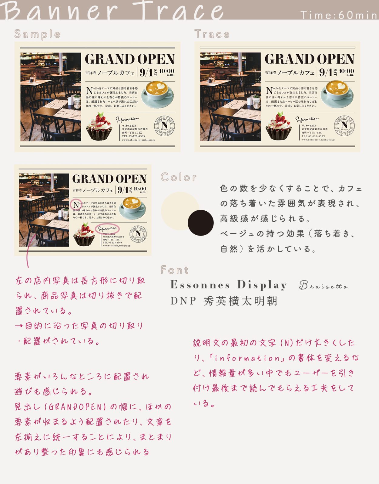 【バナートレース】デザインのドリル「#24カフェ新規開店のDM」