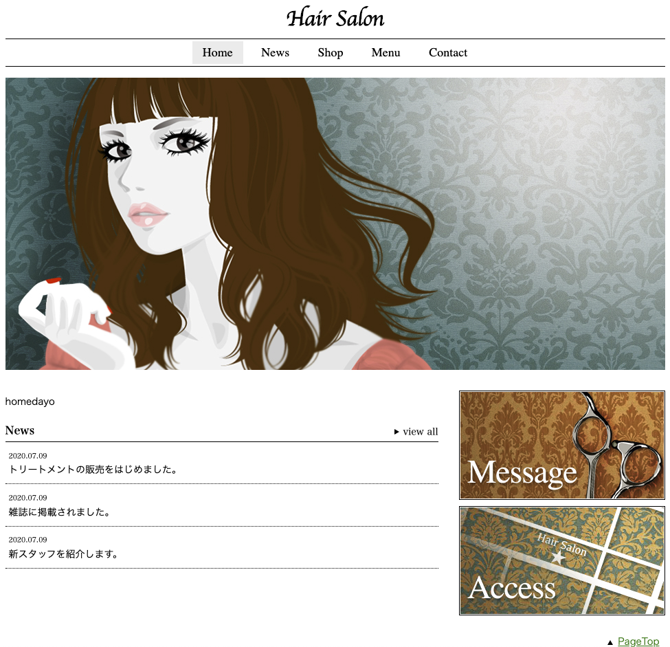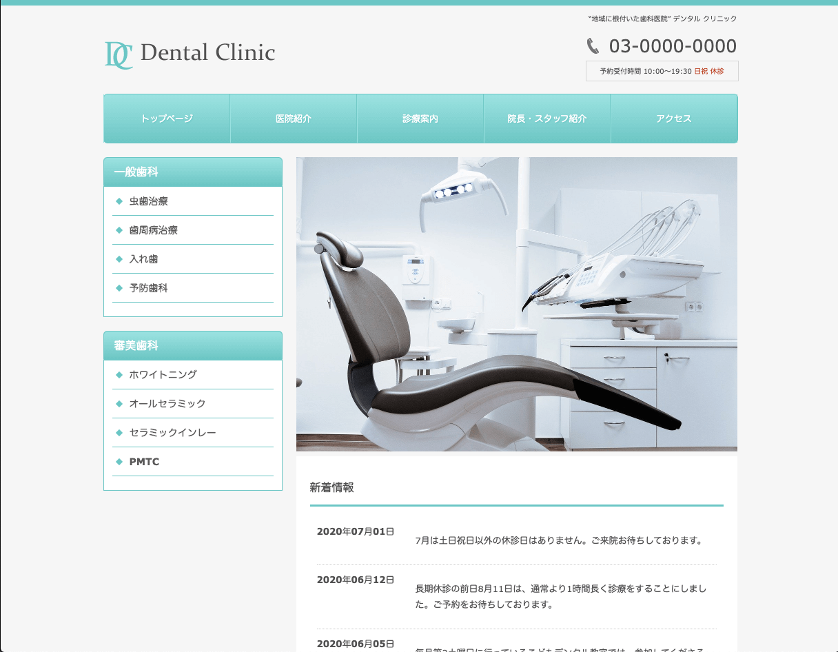 wordpress無料テーマ「 bizlight」のテーマカラーをCSSコーディングして緑系から青系に変えました。ニュースやお客様の声などを追加できます。また、アクセスマップをフッターに入れてみました。
