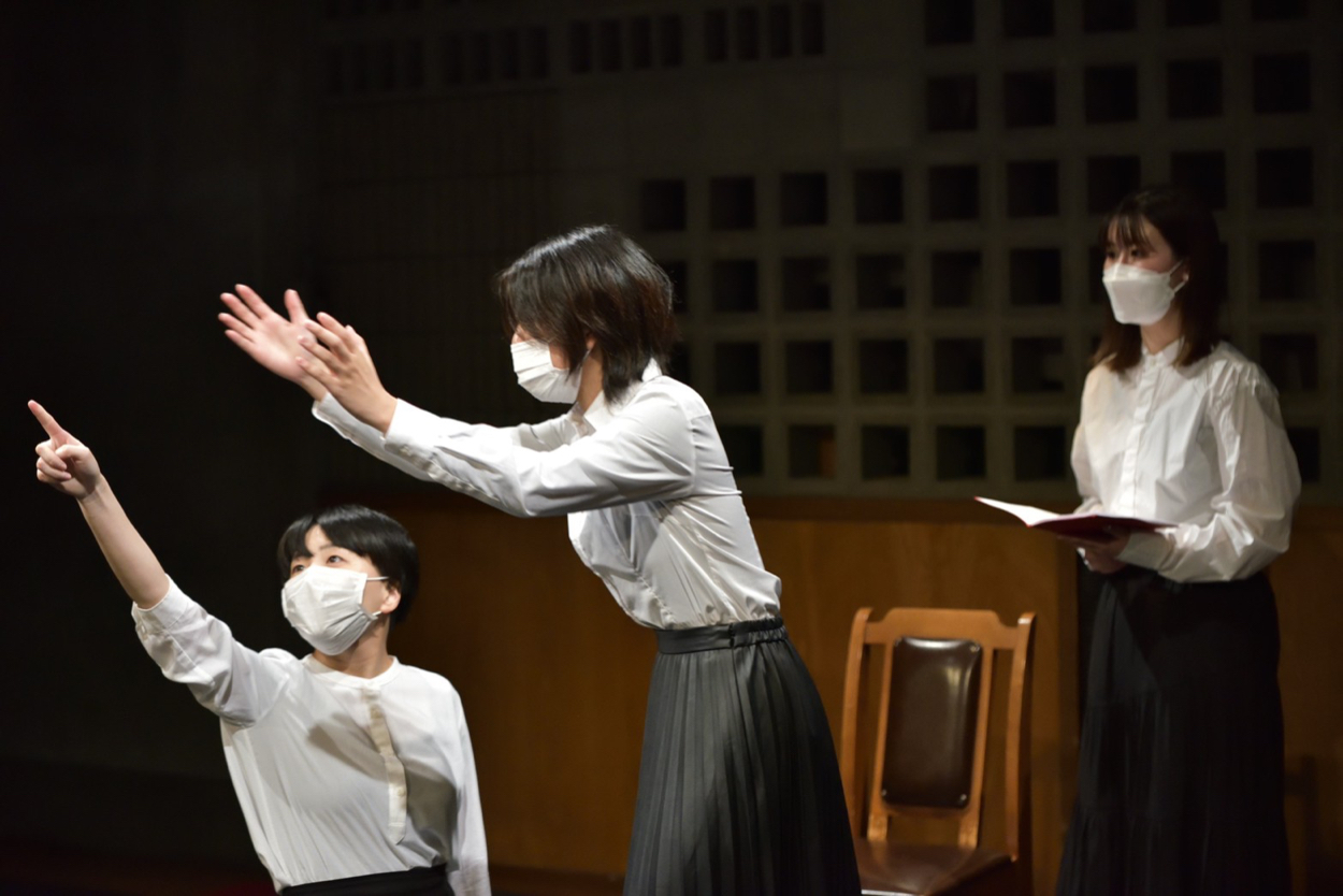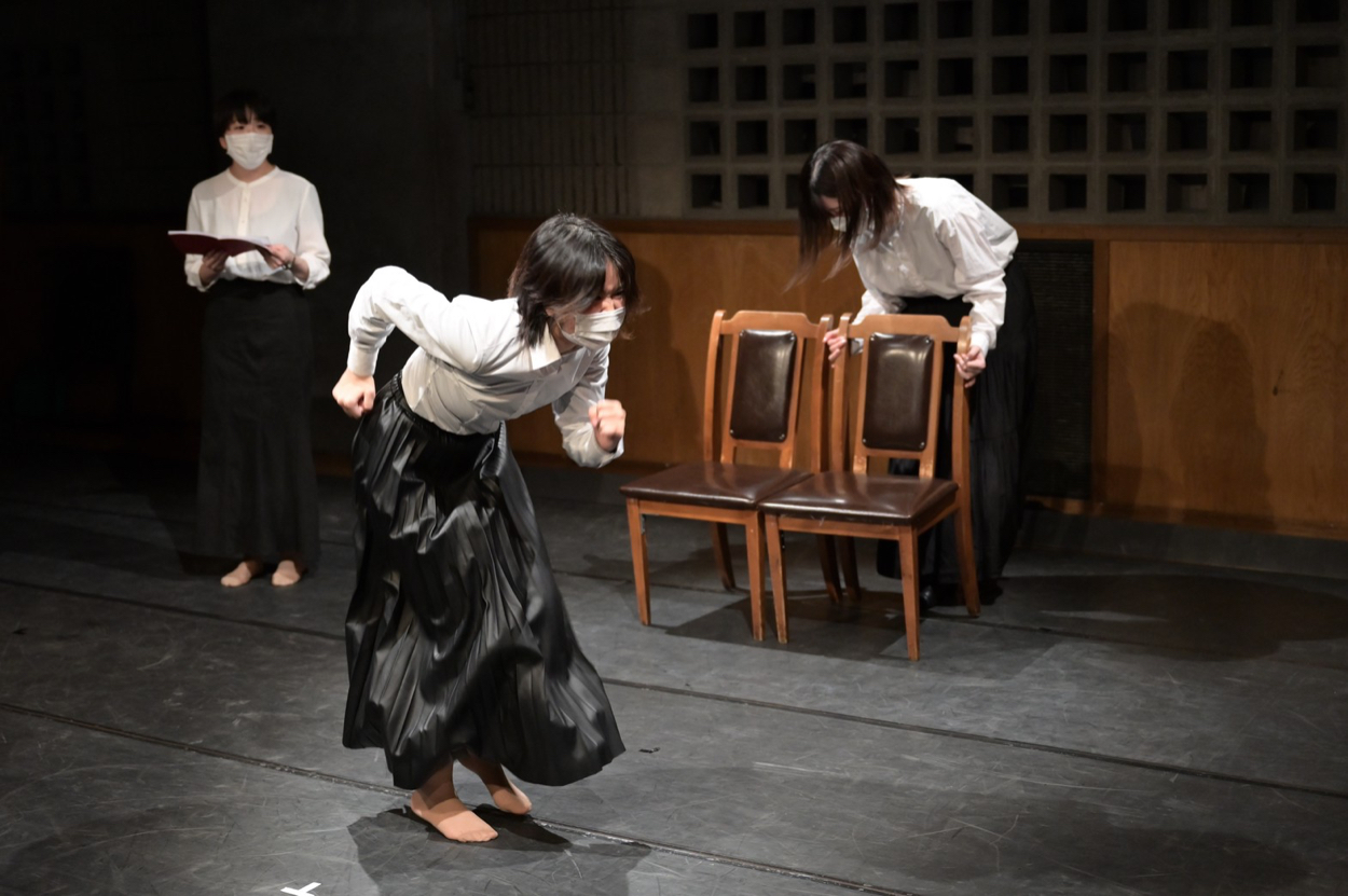 弦巻楽団が2013年より開講している演技講座。高校生から50代、演技未経験者から何度も舞台に立っている俳優まで、さまざまなメンバーが参加している2022年第2学期は、日本の名作戯曲を3本立てで上演。戦中や戦後の登場人物として「揺らぐ」ことを目標に掲げて取り組んだ講座生が、舞台上でどんな成果を見せるのか。