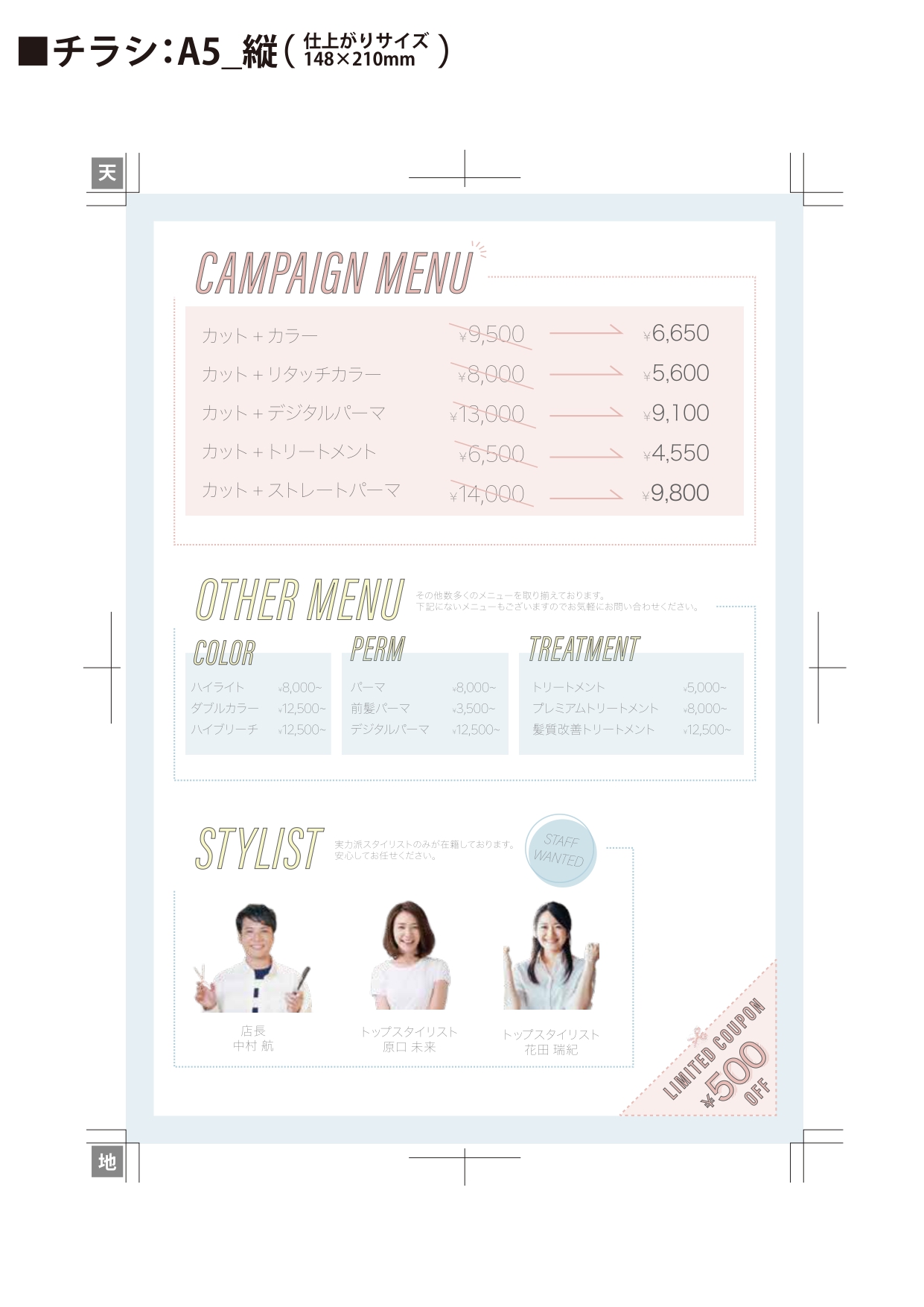 フライヤーの作成目的:オープン/キャンペーンの告知をすることで、新規会員を大きく獲得すること。認知を得ること。